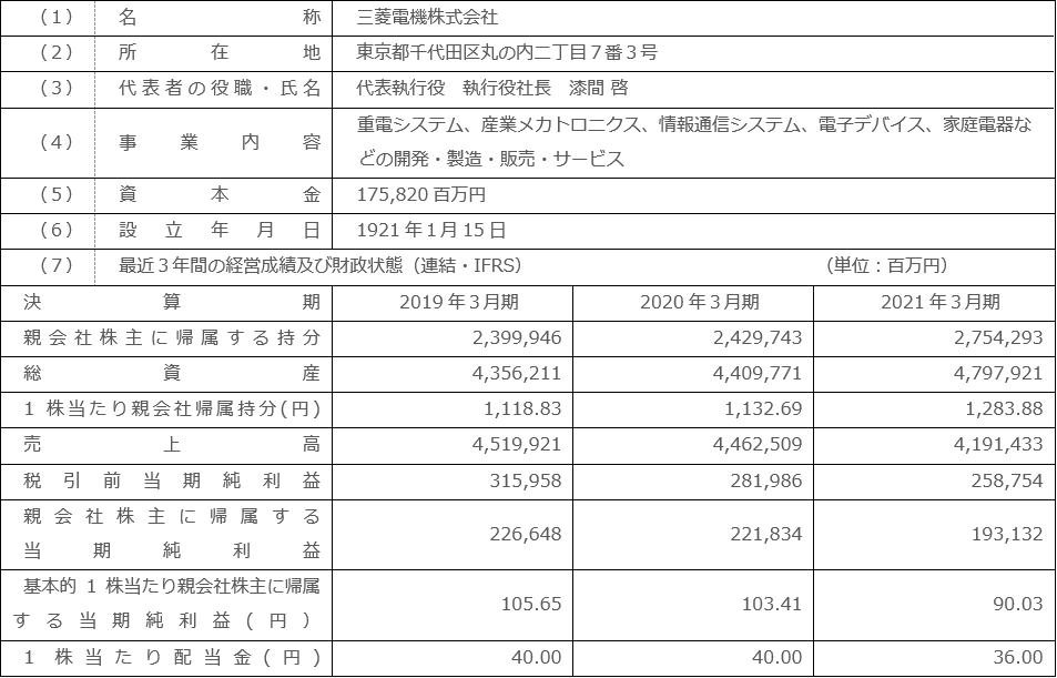 - 4.三菱電機の概要(2022年1月28日現在)