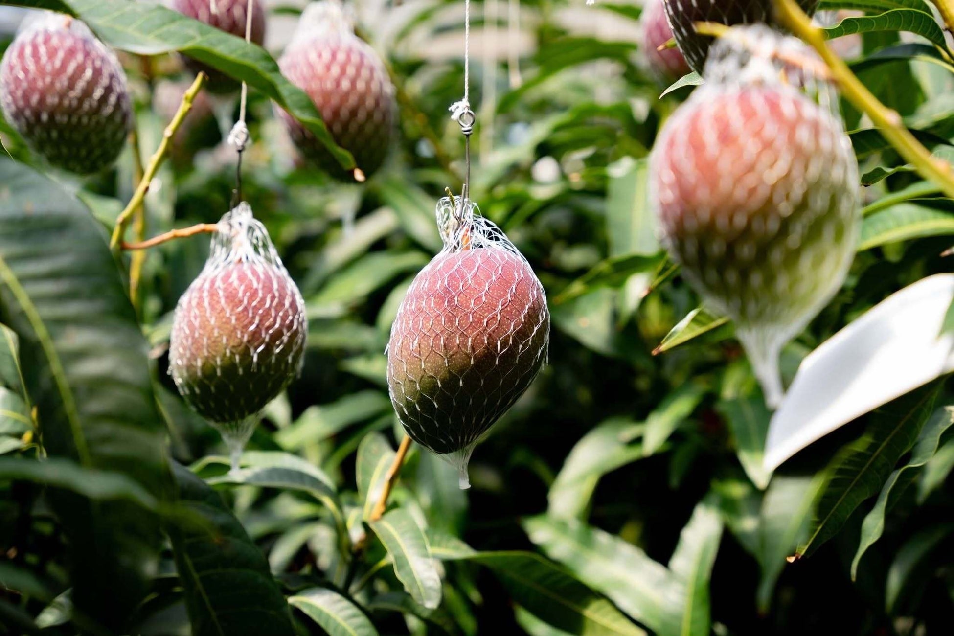 完熟状態での収穫にこだわり、1玉ずつ丁寧にネットをかけて木上で完熟し自然に落果したマンゴーを出荷しています。