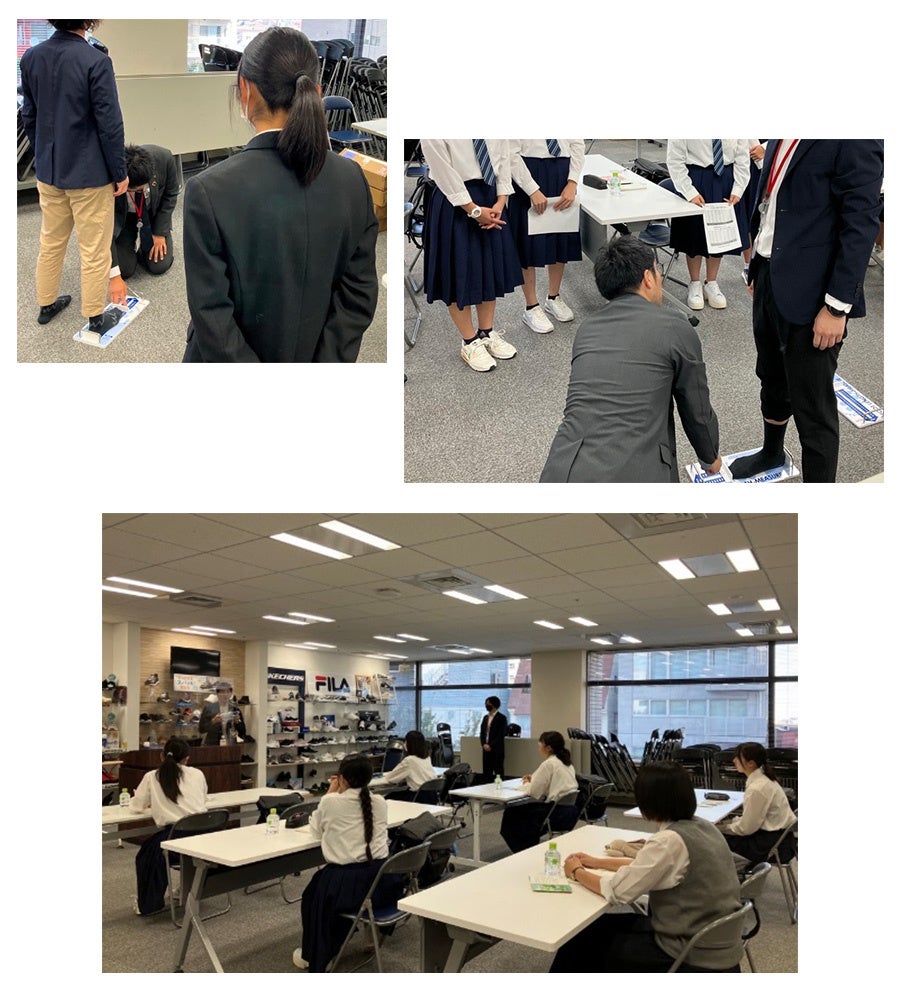 今回実施した企業訪問学習プログラムは、文部科学省が定義するキャリア教育推進の一環として「これからの未来を担う中学生・高校生が社会を支える多様な職業について学び、自らのキャリアを考える機会をサポートすること」を目的としています。プログラムにおいて、商品企画担当による当社プライベートブランド商品の紹介や着用体験、シューフィッターによる足型測定の説明と測定体験を実施いたしました。