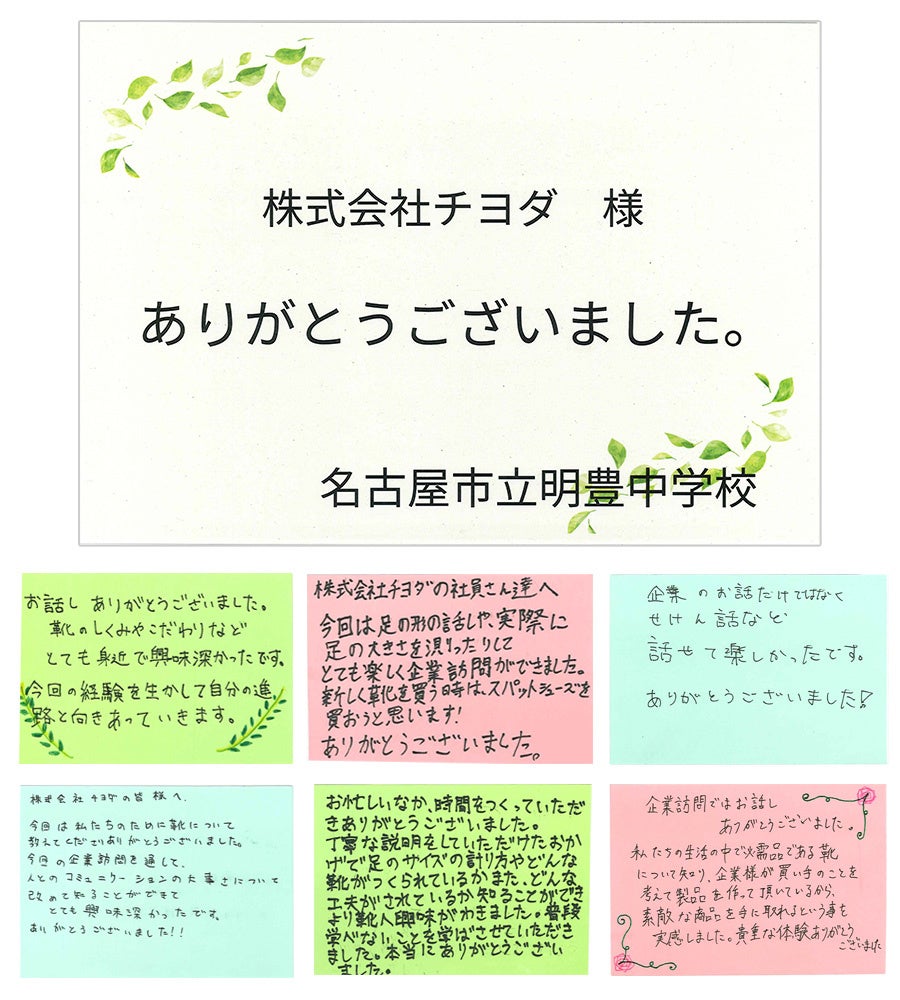株式会社チヨダ(東京都杉並区 代表取締役社長 町野 雅俊)は、2023年6月、10月の計5回にわたり、岐阜県、岡山県、愛知県、福岡県、愛媛県の中学生・高校生の皆様を、本社へお招きし「キャリア教育」をテーマとした訪問学習を実施いたしました。