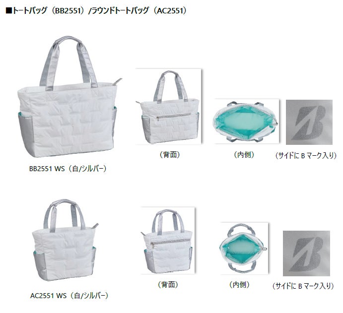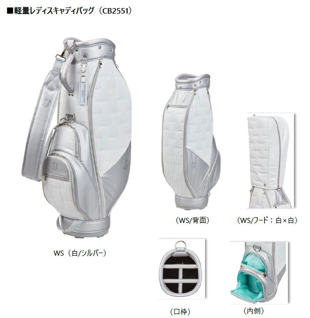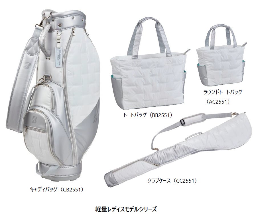 ブリヂストンスポーツ株式会社は、キルト風デザインに裏地のミントグリーン色をアクセントにきかせた軽量レディスキャディバッグ(CB2551)と、コーディネイト可能なトートバッグ(BB2551)、ラウンドトートバッグ(AC2551)、クラブケース(CC2551)を3月15日より発売します。価格は全てオープンです。