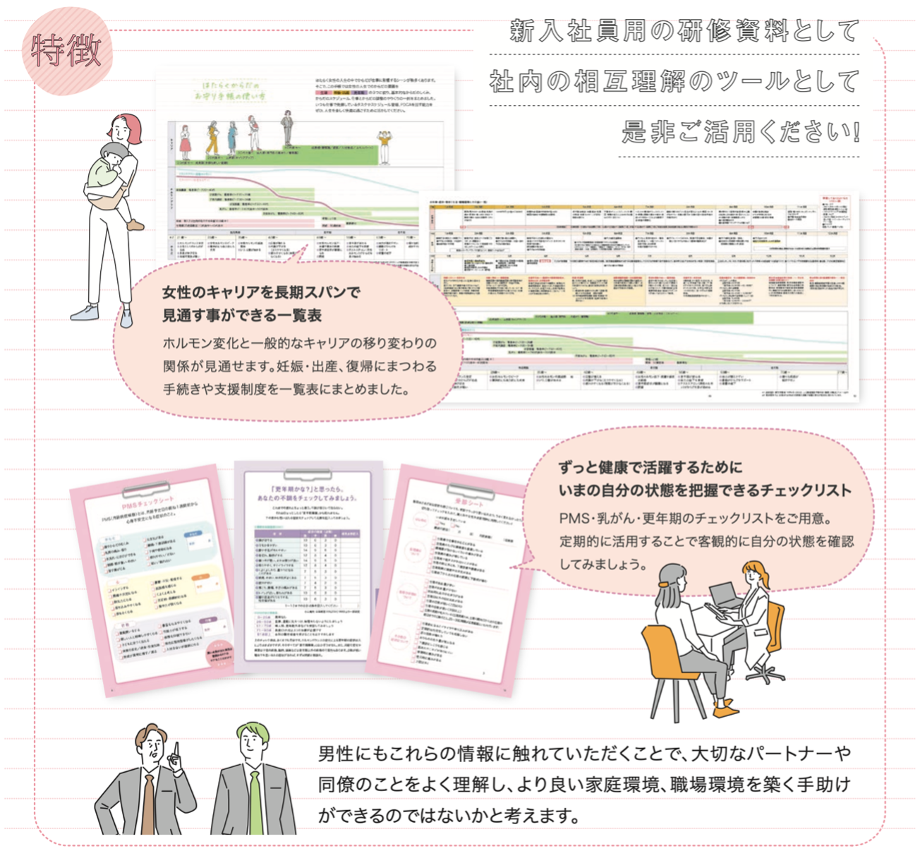 祖業である印刷をはじめ、デザイン、編集、デジタル、翻訳、販売促進に至るまで、あらゆる情報サービスを一貫して提供しているITPでは、女性の社会進出が進み、勤続年数の伸長、ライフスタイルの変化により働き方が多様化する中で、すべての働く女性、 なかでもこれからライフイベントを迎える若い層に向けて、現代社会で働く女性の健康課題を理解し、知識を深める為の手引書を届けたいという想いで「はたらくからだのお守り手帳」制作プロジェクトを発足し、身体や健康について医師の医療監修、専門家のアドバイスの元、当手帳を制作しました。