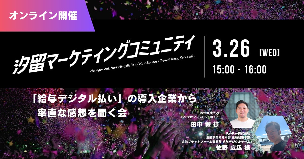 株式会社favy(東京都新宿区・代表取締役高梨巧)は、2025年3月26日(水)に開催される株式会社経営参謀主催のセミナー「『給与デジタル払い』の導入企業から率直な感想を聞く会」に参加いたします。