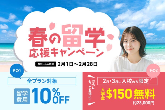 ― 留学費用10%OFF・入学金免除で、春休み・GWの留学準備を後押し ―