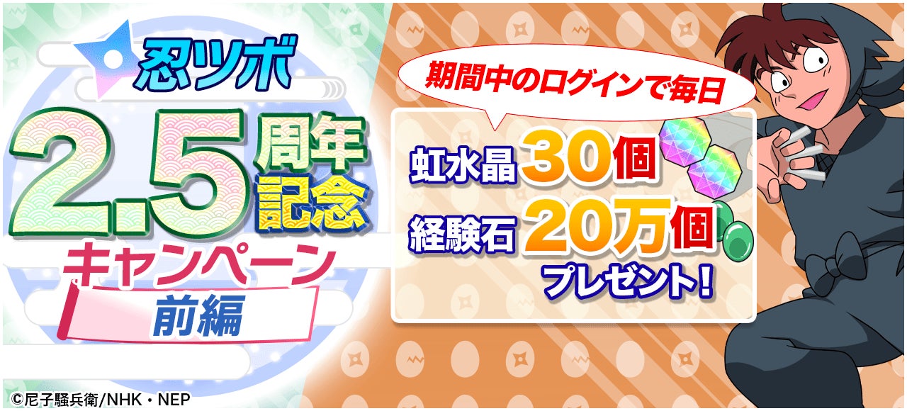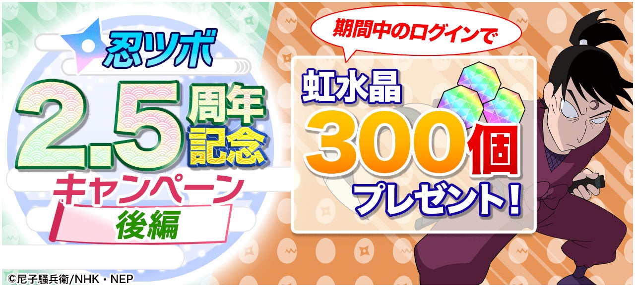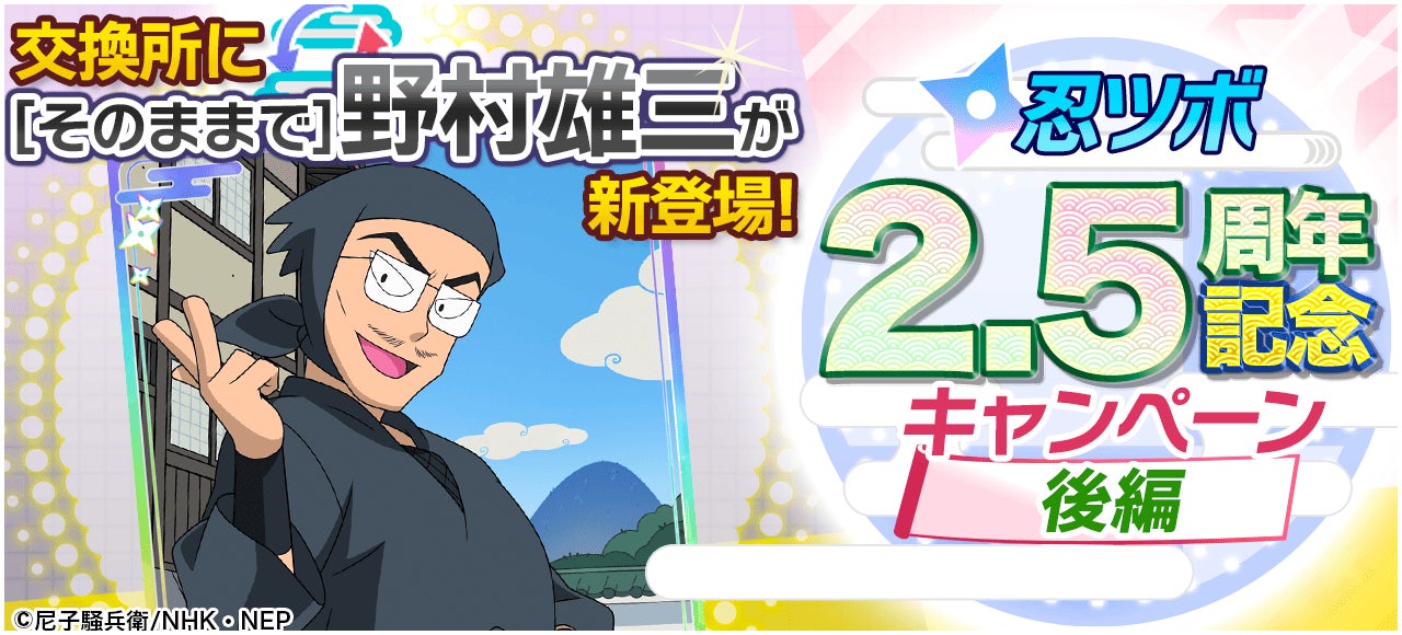 スマートフォンゲーム「忍たま乱太郎 ムゲンのツボ大暴走の段」(以下、『忍ツボ』)はサービス開始2.5周年を迎えるのを記念し、2025年4月16日(水)より、ゲーム内においてさまざまな記念キャンペーンを開催することをお知らせいたします。