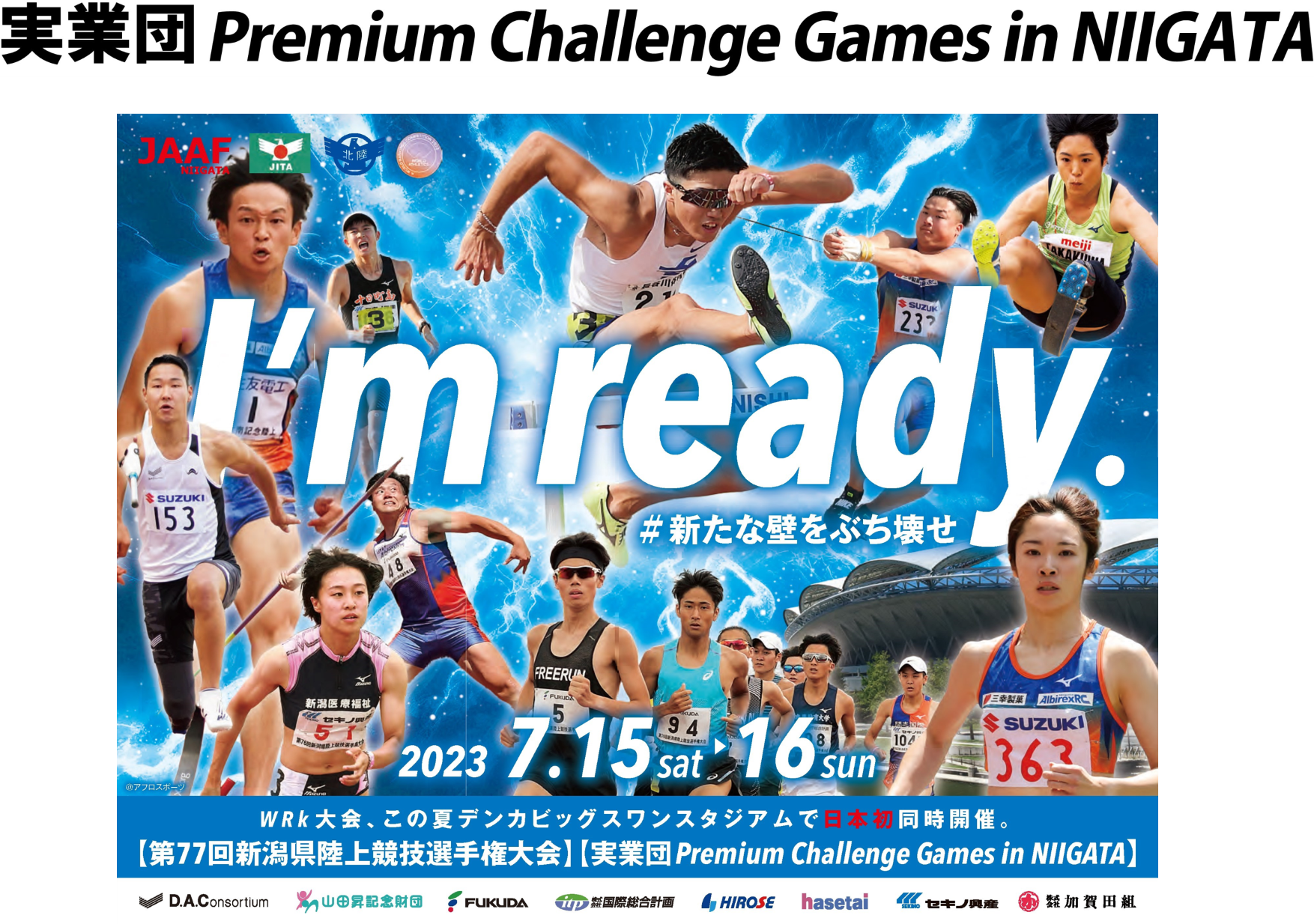 種目:[実業団](男子)100m、110mH、走幅跳、4×100mR、やり投/(女子)100m、100mH、走高跳、棒高跳、走幅跳、三段跳、砲丸投、円盤投、ハンマー投、やり投/[パラ/デフ](男子)100m、走幅跳/(女子)100m、走幅跳