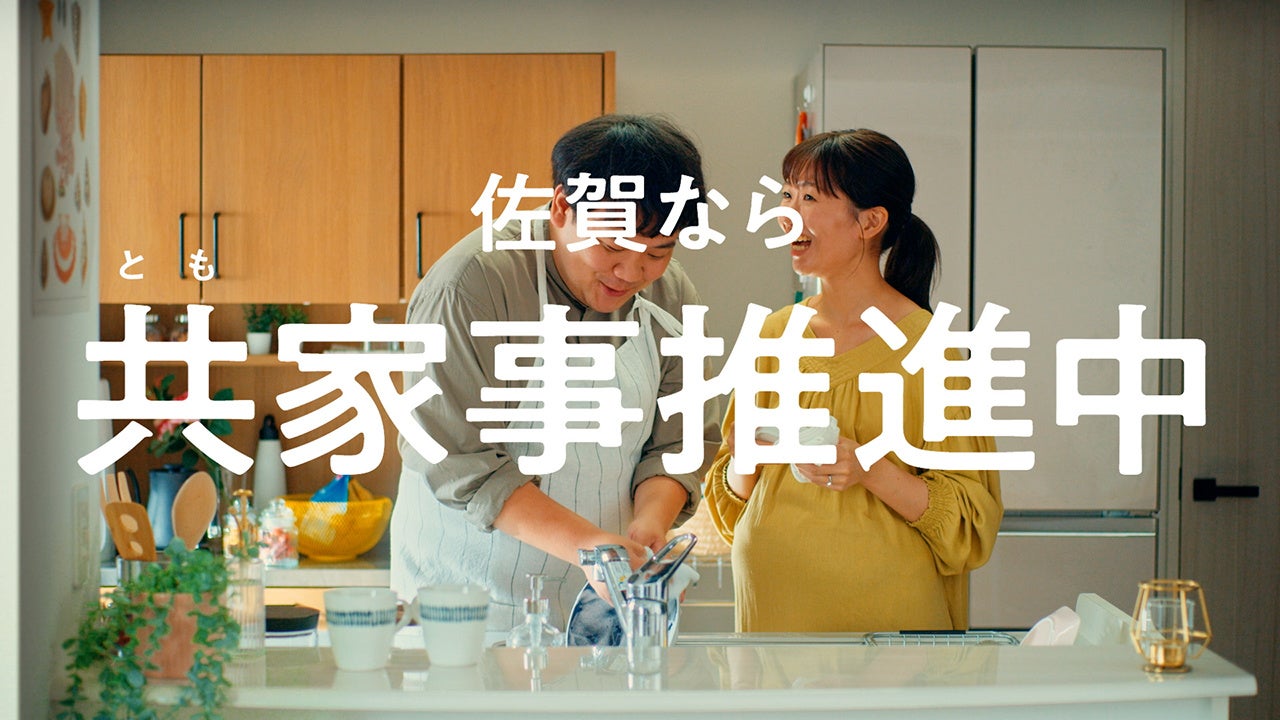 佐賀県は、夫婦がともに家事・育児にかかわる「共家事」や、妻の妊娠期から男性の積極的な家事・育児参加を働きかける「マイナス1歳からのイクカジ事業」を推進しています。動画では、佐賀県の取組の結果、妊娠中の妻と、夫が仲良く家事をする様子を描いています。