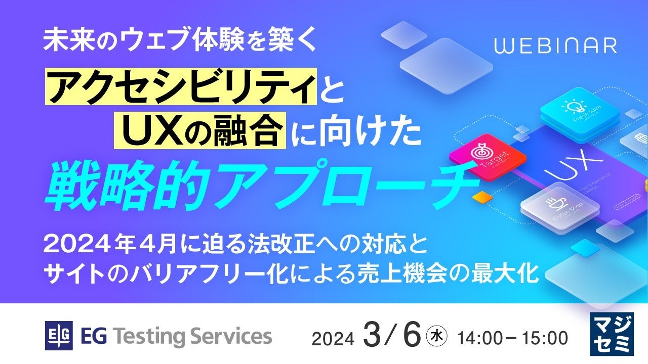 【EGテスティングサービス株式会社】2024年4月の法改正に向け、Webアクセシビリティ対策ウェビナー「アクセシビリティとUXの融合に向けた戦略的アプローチ」を開催