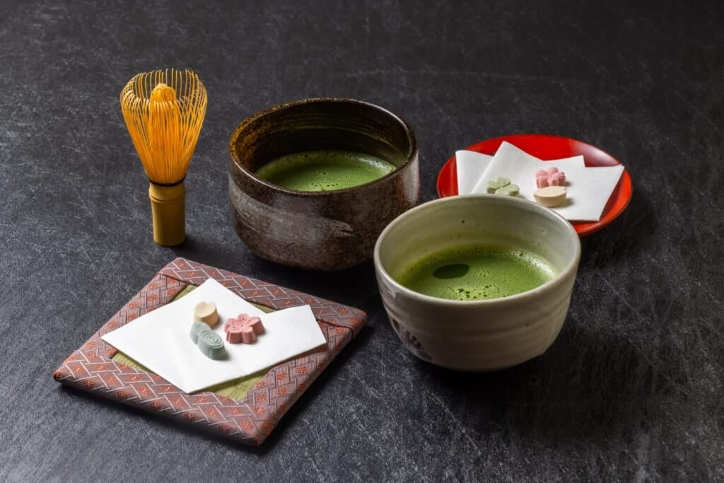 特長2、「鶴屋八幡」の和菓子とお抹茶が愉しめる