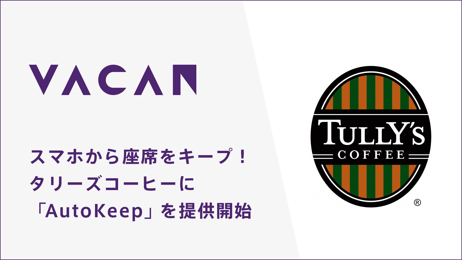 そこでバカンとタリーズコーヒーでは、事前に座席の空き情報を確認でき、座席をキープできる店内座席の即時キープサービス「AutoKeep」を活用した専用スペースを店内に用意し、スムーズに、そしてストレスなく来店者が作業などに利用できる環境の整備に取り組んでいます。今回新たに導入されるタリーズコーヒー ASTY静岡店は駅直結のため、電車までの待ち時間といったスキマ時間での利用も期待されています。