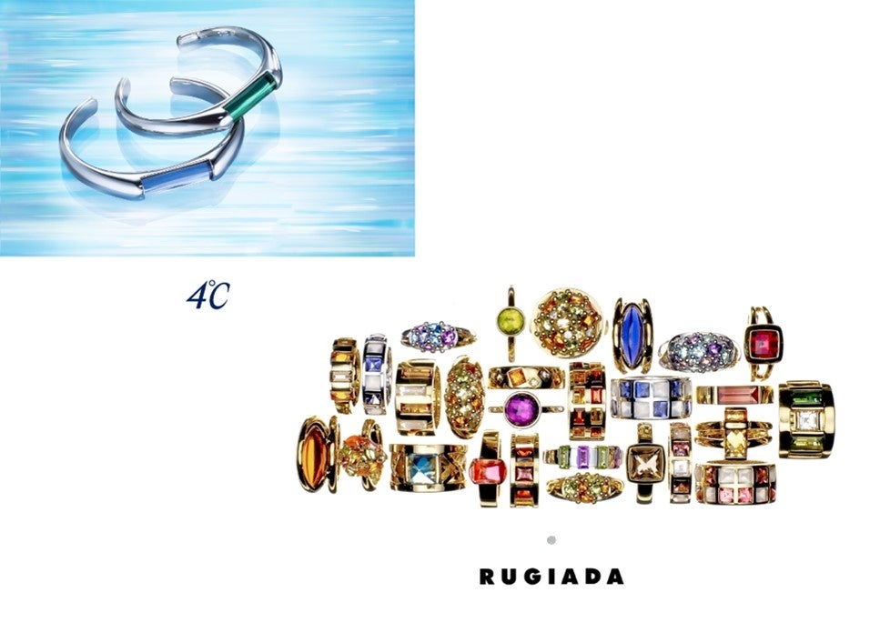 「身に着ける女性の心を満たすジュエリーをつくりたい」と1972年に誕生した「4℃」、1996年にパリのサンジェルマン通りに誕生し2022年にリスタートした「RUGIADA」。