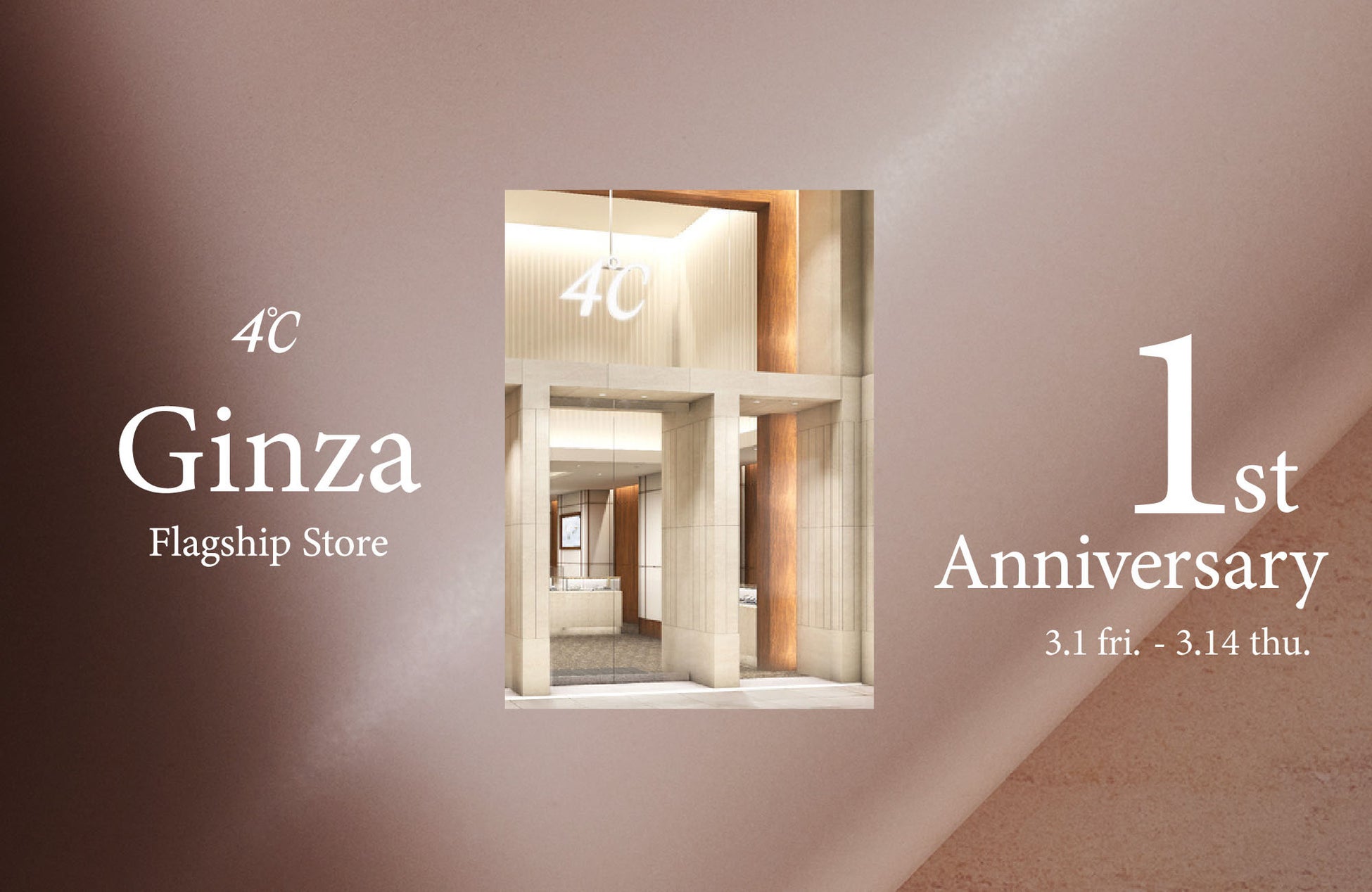 2024年3月1日(金)にグランドオープン1周年を迎える「4℃ 銀座本店」。アニバーサリーを記念した、「1st Anniversary Fair」を期間限定開催いたします。