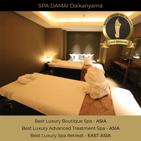 「スパ ダマイ」は、2012年8月に代官山に開業。隠れ家的なスパとして、多くの著名人の方々にもご愛顧いただいております。また、ブティックスパ(路面スパ)としてのサービスやシステムが高く評価され、2017年以来、数々のスパアワードを受賞しています。そこで働くセラピストたちが開発したホームケア製品は、さまざまなメディアにご紹介いただき、ベストコスメ受賞の実績もございます。国際的なスパアワードで日本のスパが受賞したのは「スパ ダマイ」が初となります。