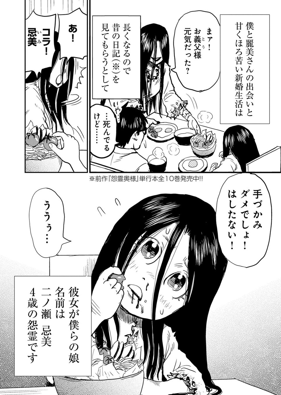 人間と怨霊の垣根を乗り越え夫婦となった陸さんと麗美さん。そんな二人のもとにかわいすぎる怨霊・忌美ちゃんがやってきた!愛娘が加わり『怨霊奥様』は『怨霊お子様』にパワーアップ!