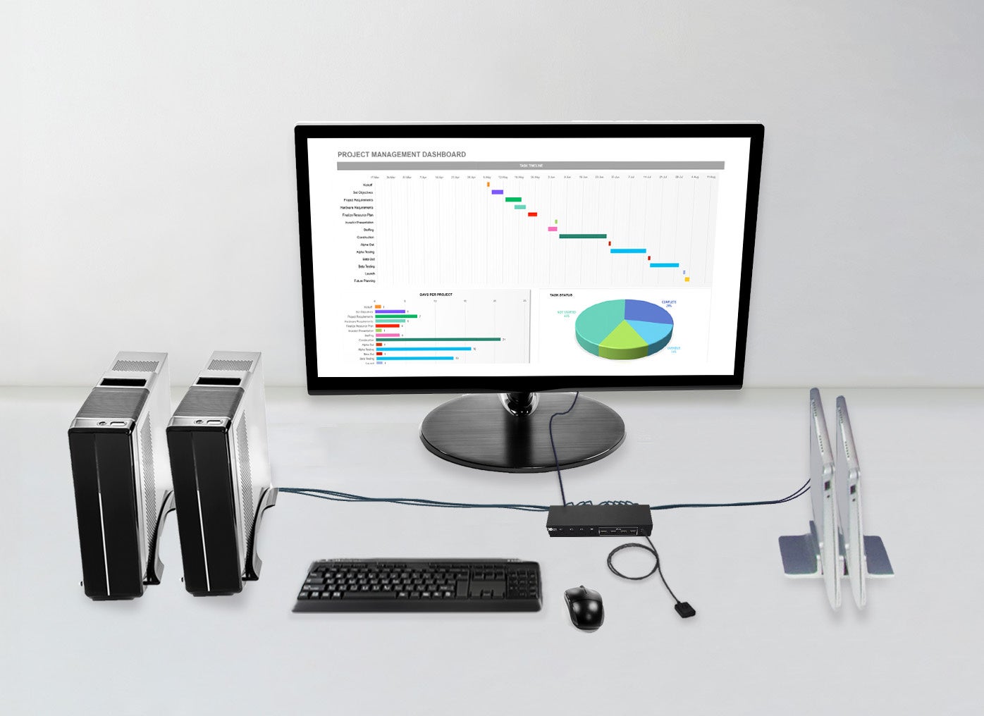 キーボード・ディスプレイ・マウス・USBデバイスを4台のパソコンで切り替えて快適操作