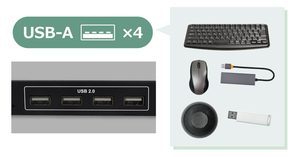 本製品は、USB-Aポート(USB2.0対応)を4つ搭載しています。