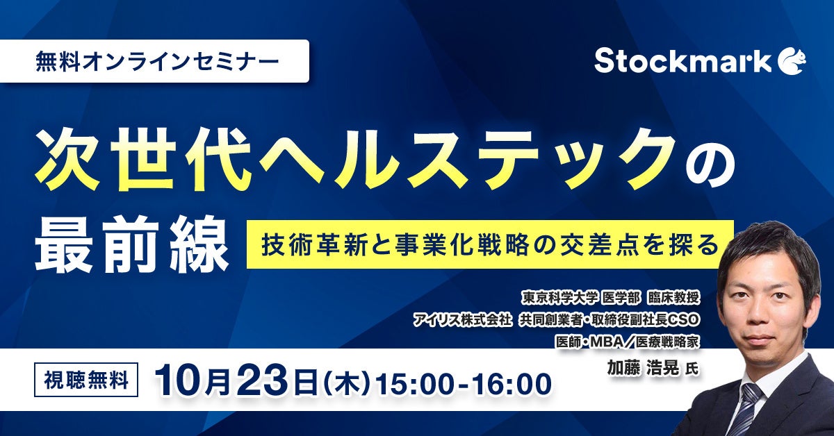 【10月23日(木) 無料セミナー】『次世代ヘルステックの最前線 ― 技術革新と事業化戦略の交差点を探る』(ストックマーク主催)