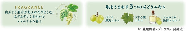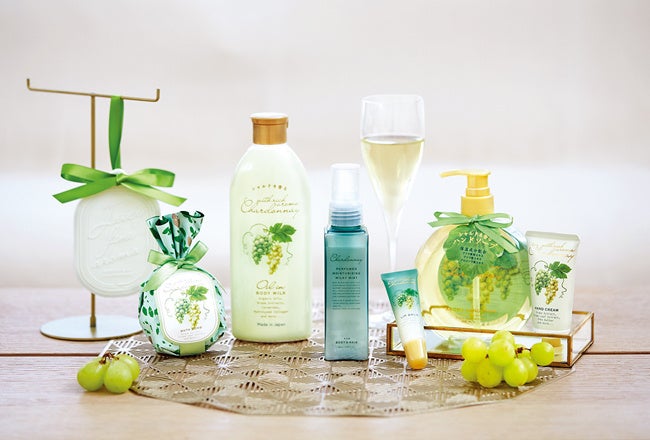 果汁味あふれるみずみずしいシャルドネアロマが大好評のフレグランス&バスシリーズ『シャルドネ』から、今年はボディーケア、ギフト、ホームフレグラスにそれぞれ新アイテムが登場。白ぶどう果汁があふれ出すようなシャルドネの、幸せ感じる豊かなアロマで至福のひとときをお届けします。