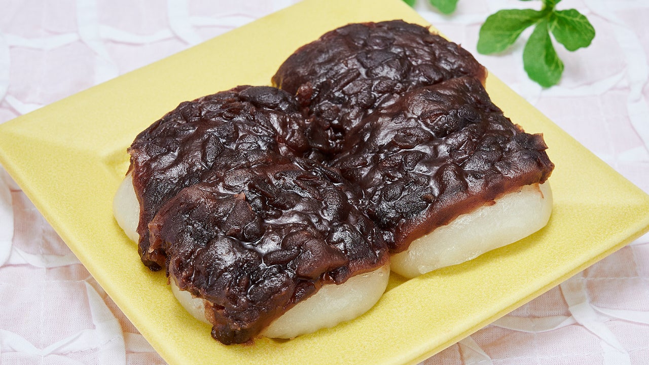 写真左:「ぼたもち(つぶ・きなこ)」は、あんこたっぷりのぼたもちときなこぼたもちをアソートにしました。