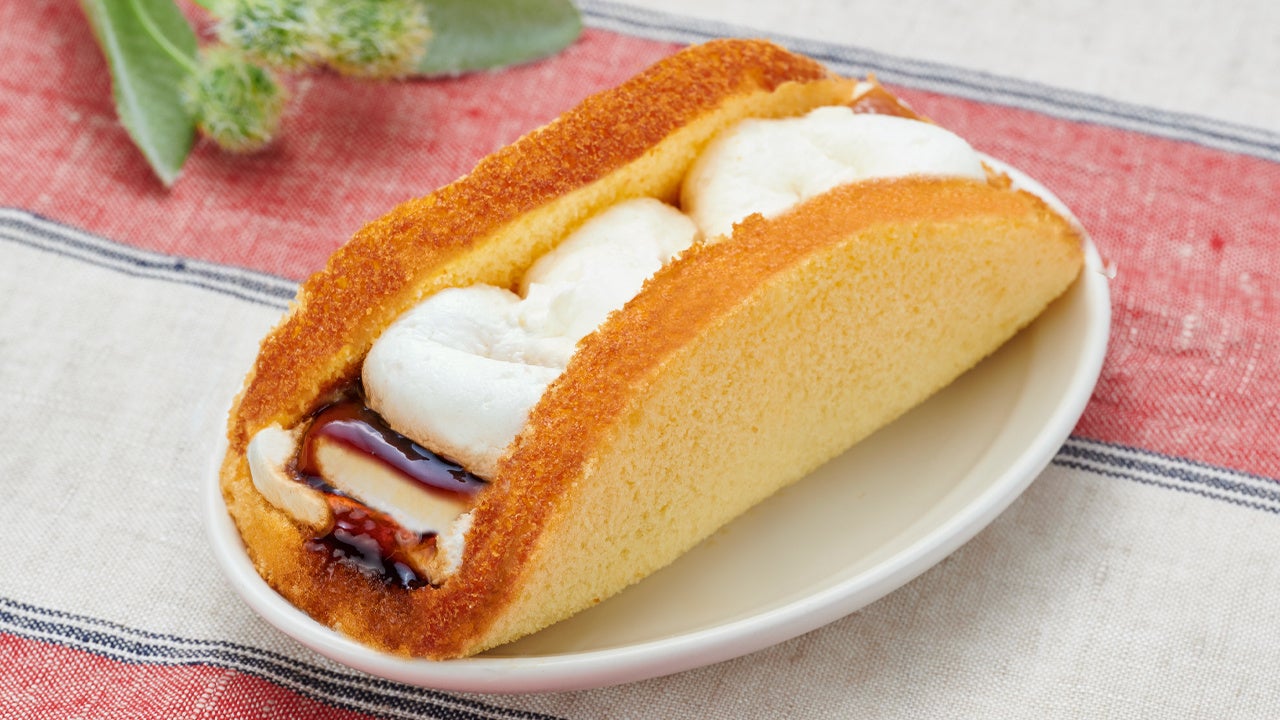 もちもち食感で香ばしく焼き上げたどらやき生地に、小豆の風味豊かな粒あんとホイップクリームをサンドしました。