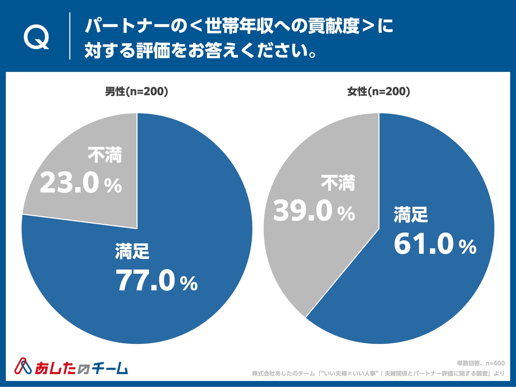 Q. パートナーの<世帯年収への貢献度>に対する評価をお答えください。(単数回答、n=400)