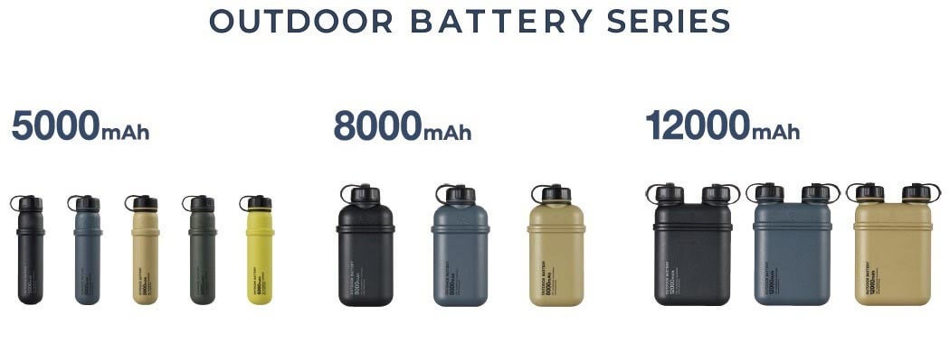昨年、新発想の製品を支援できる応援購入サイトにて先行販売し、目標額を大きく超える4,104%の達成率を記録した人気のアウトドア製品です。JIS保護等級IP67の防水・防塵性搭載のモバイルバッテリーは、コネクター部分をネジ栓でカバーすることで、雨や水辺といったアウトドアシーンに対応するだけでなく、落下時、リチウムイオン電池の破損を防ぐなどアウトドアに特化した設計です。カラーリングもアウトドアシーンに溶け込むカラーをセレクト。5,000mAh・8,000mAh・12,000mAhから選ぶことができ、それぞれUSB-AポートとUSB Type-C(TM)(USB-C(TM))ポートを合計2~3ポート搭載しています。また、モバイルバッテリーと接続して使用できる専用のLEDランタンと、太陽光で充電ができるソーラーチャージャーも同時に発売を開始いたします。
