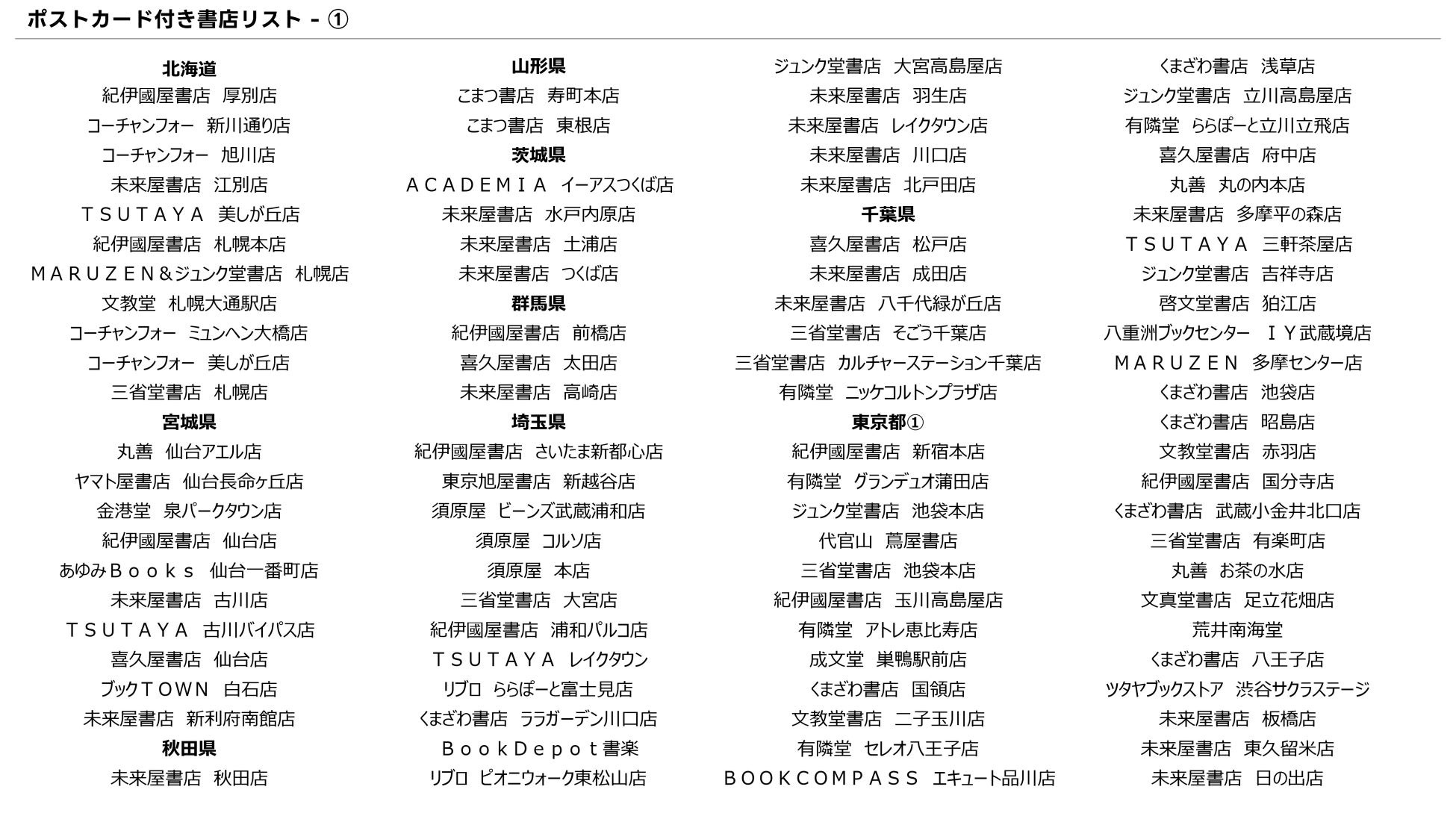 購入特典として、一部の書店では数量限定の特製ポストカードが付属します。