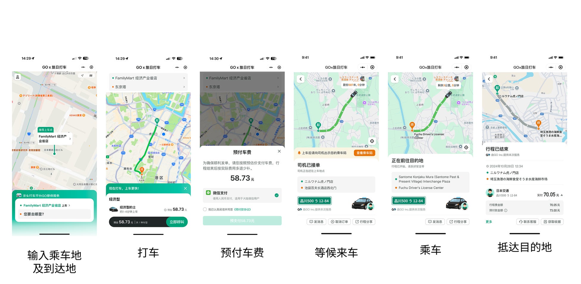 『GO x 旅日打车』はリンクティビティ株式会社(本社:東京都千代田区、代表取締役社長:孔 成龍)との協業により開発されたミニプログラムで、ユーザーは『WeChat』内で『GO旅日配車』と検索するだけで、追加アプリのダウンロードや会員登録なしで簡単に注文が可能です。注文プロセスはすべて中国語で表示され、リアルタイムで車両の位置を確認可能『WeChat Pay』による決済にも対応し、中国国内と同様のスムーズな移動体験を日本でも提供します。