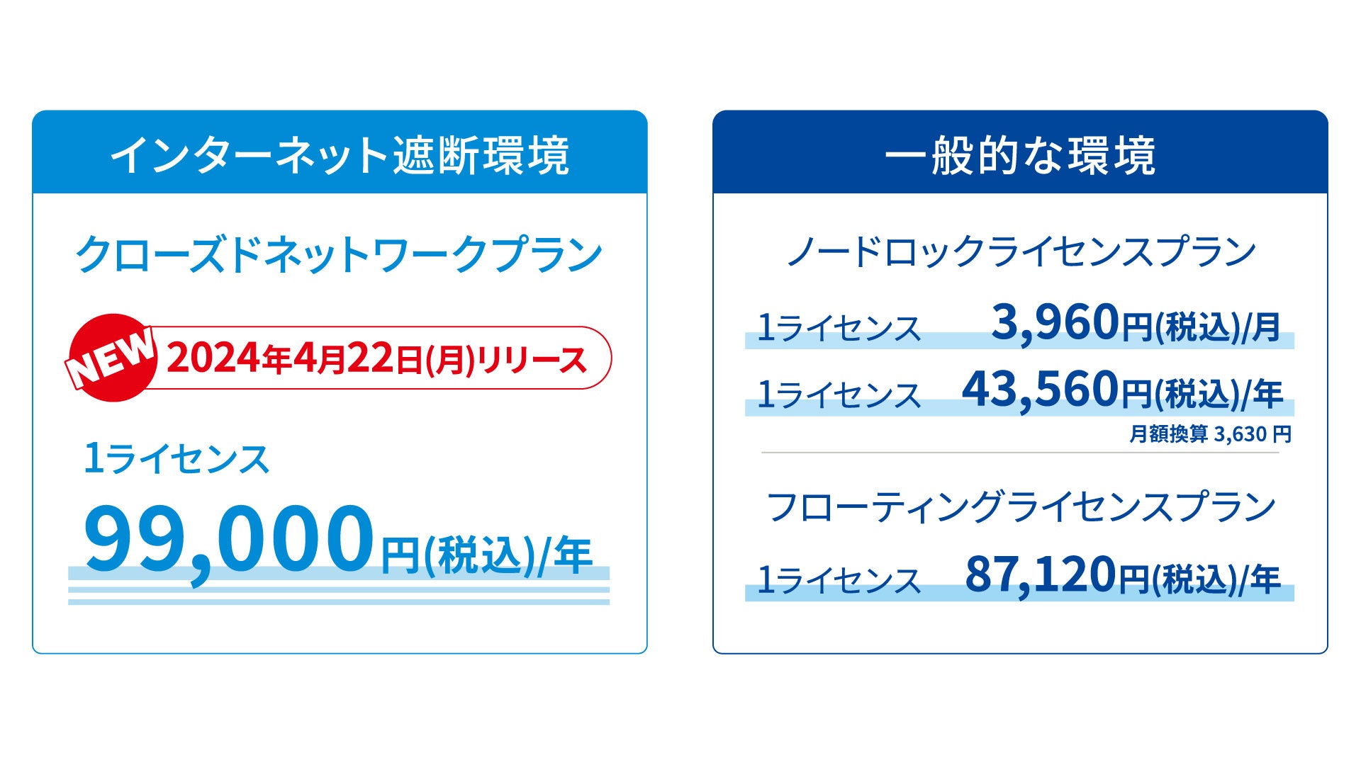 クローズドネットワークプランは、1年間の買い切りプランとなっていて1ライセンス99,000円(税込)でのご提供となります。