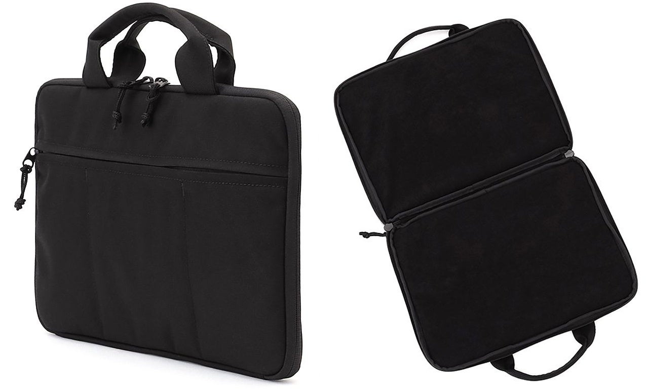 バッグと同じ素材のPCケース。内側にクッション入りでPCの持ち運びが安心。持ち手付きのためPCケース単体でバッグとして持ち運びが可能です。