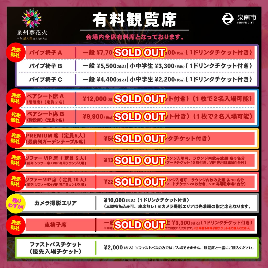 各種プレイガイドにて「泉州夢花火in泉南」の有料観覧席絶賛発売中です。