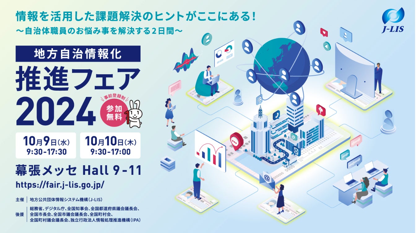 地方公共団体職員が、費用対効果に優れ利用者の視点に立った利便性の高い先進的な情報システムや、災害に強いデジタル・ガバメントの実現に資する最新システムの展示などを見学し、出展者から説明を受けるとともに、行政サービスの高度化、地域の課題解決における積極的な ICT の活用方法等について、有識者及び実務者を登壇者に招いた講演会を視聴することにより、自治体 DX を推進することを目的に「地方自治情報化推進フェア 2024」を開催します。