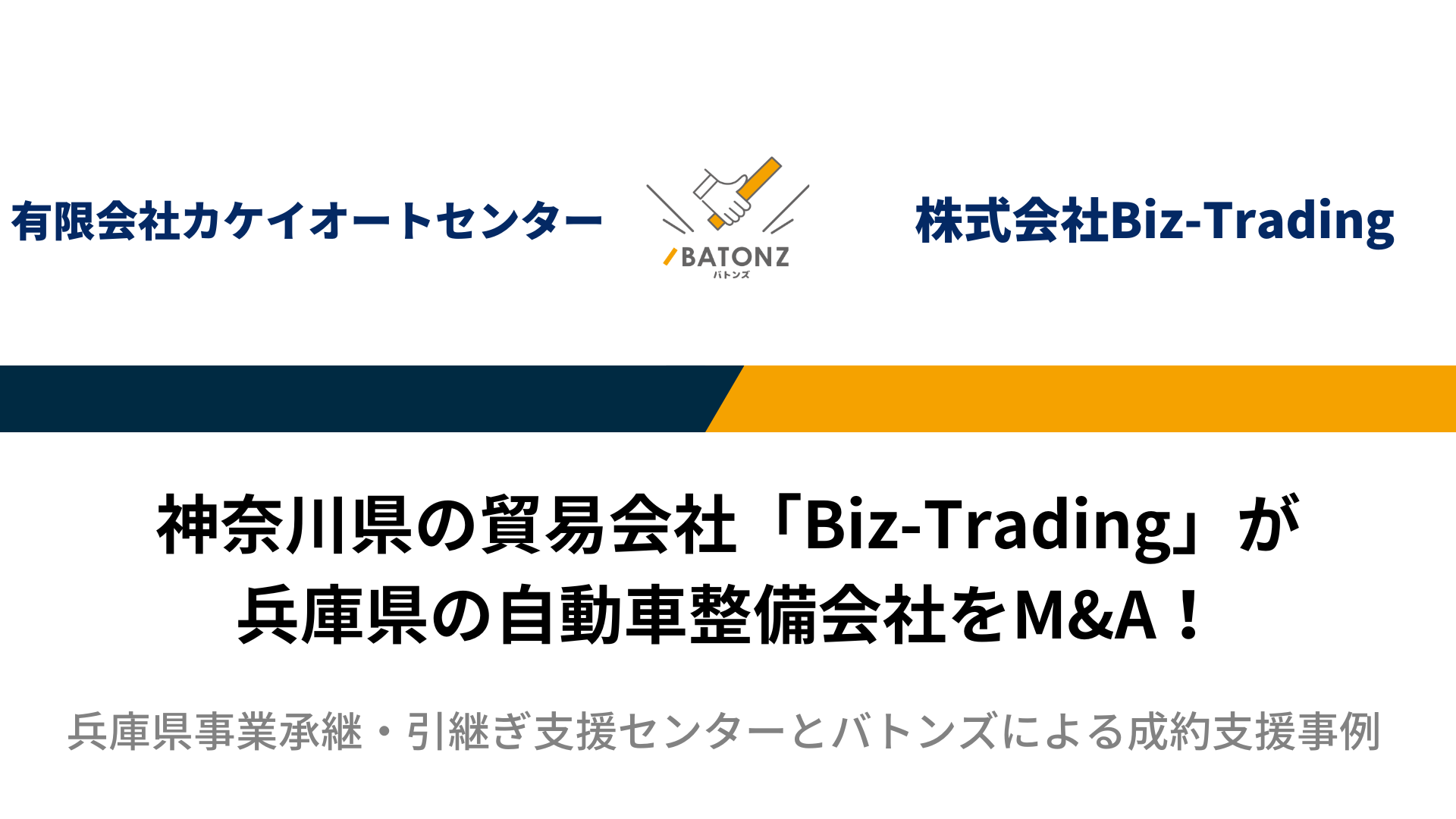 【バトンズ成約事例】神奈川県の貿易会社「Biz-Trading」が兵庫県の自動車整備会社をM&A!