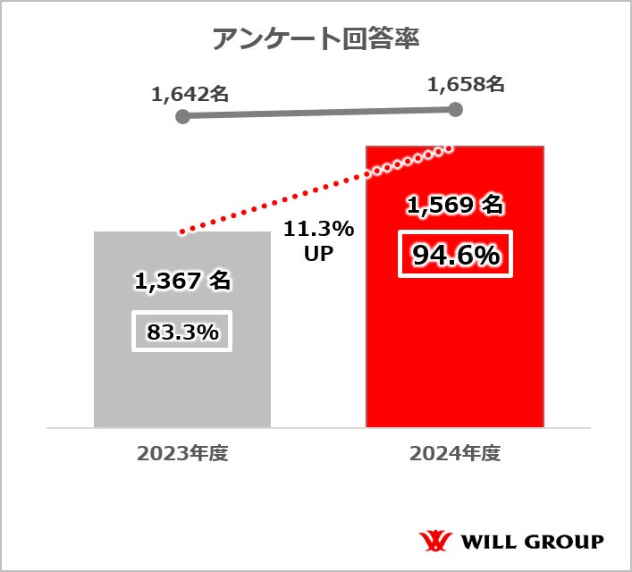 ▋働きがいアンケートの回答率が83%→94%へ向上