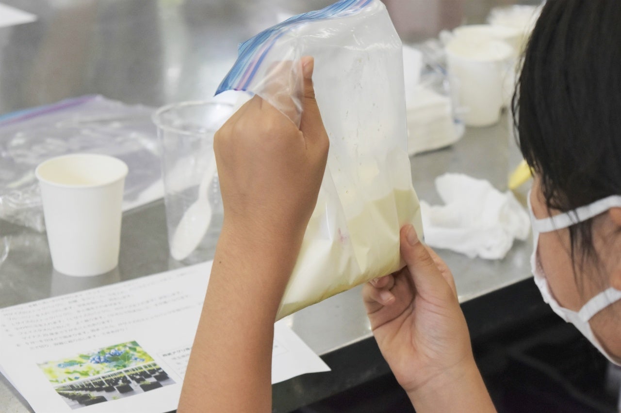 フリーザーバッグと氷を使用し、小さなお子さまでも簡単に楽しくアイスクリームが作れます。自然の恵みを堪能し、農業や自然科学への興味を喚起する、夏休みにぴったりのわくわく体験プログラムです。