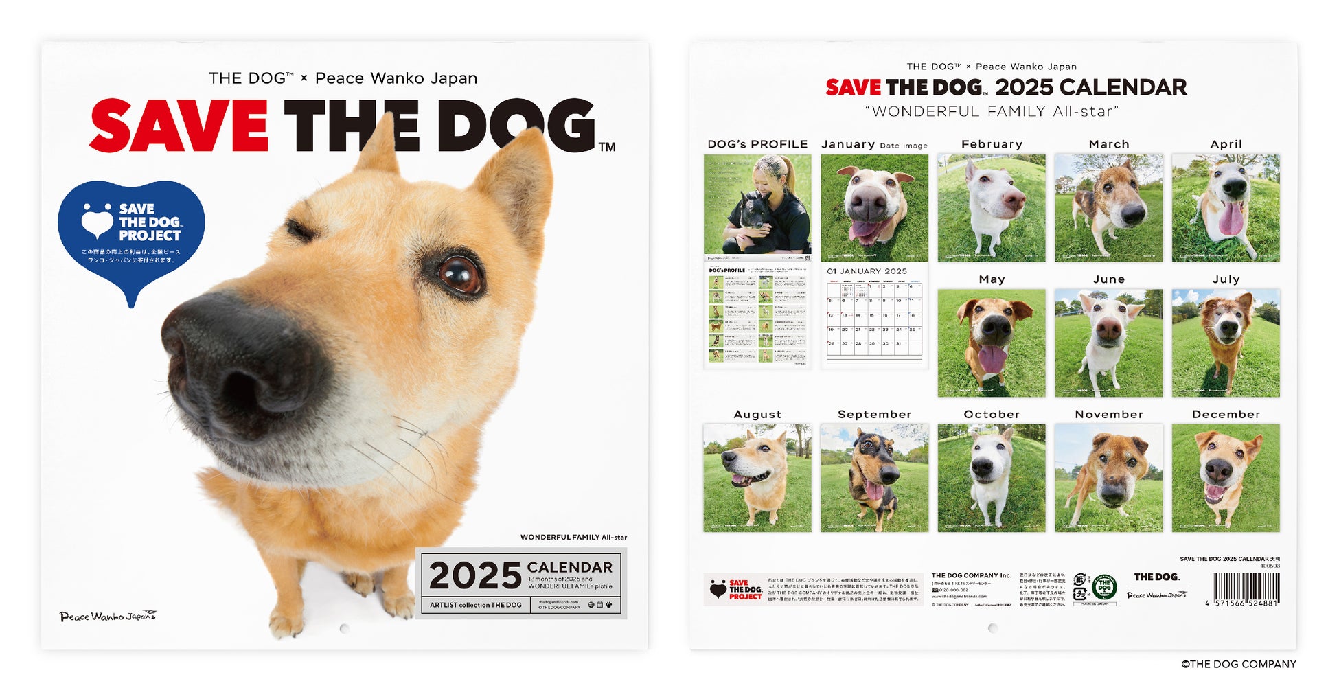 犬の保護・譲渡活動を通して犬の「殺処分ゼロ」をめざして活動している「ピースワンコ・ジャパン(運営 特定非営利活動法人ピースウィンズ・ジャパン:略称ピースウィンズ、 代表理事:大西健丞、本部:広島県神石高原町)」は、2020年にブランド20周年を迎え、魚眼レンズで撮ったユニークさが特徴の「THE DOG™」とコラボレーションし、個性豊かな保護犬たちの笑顔を集めたTHE DOG™×ピースワンコ・ジャパン 「SAVE THE DOG 2025カレンダー」を制作、THE DOG STORE特設サイトにて受注販売を開始しました。
