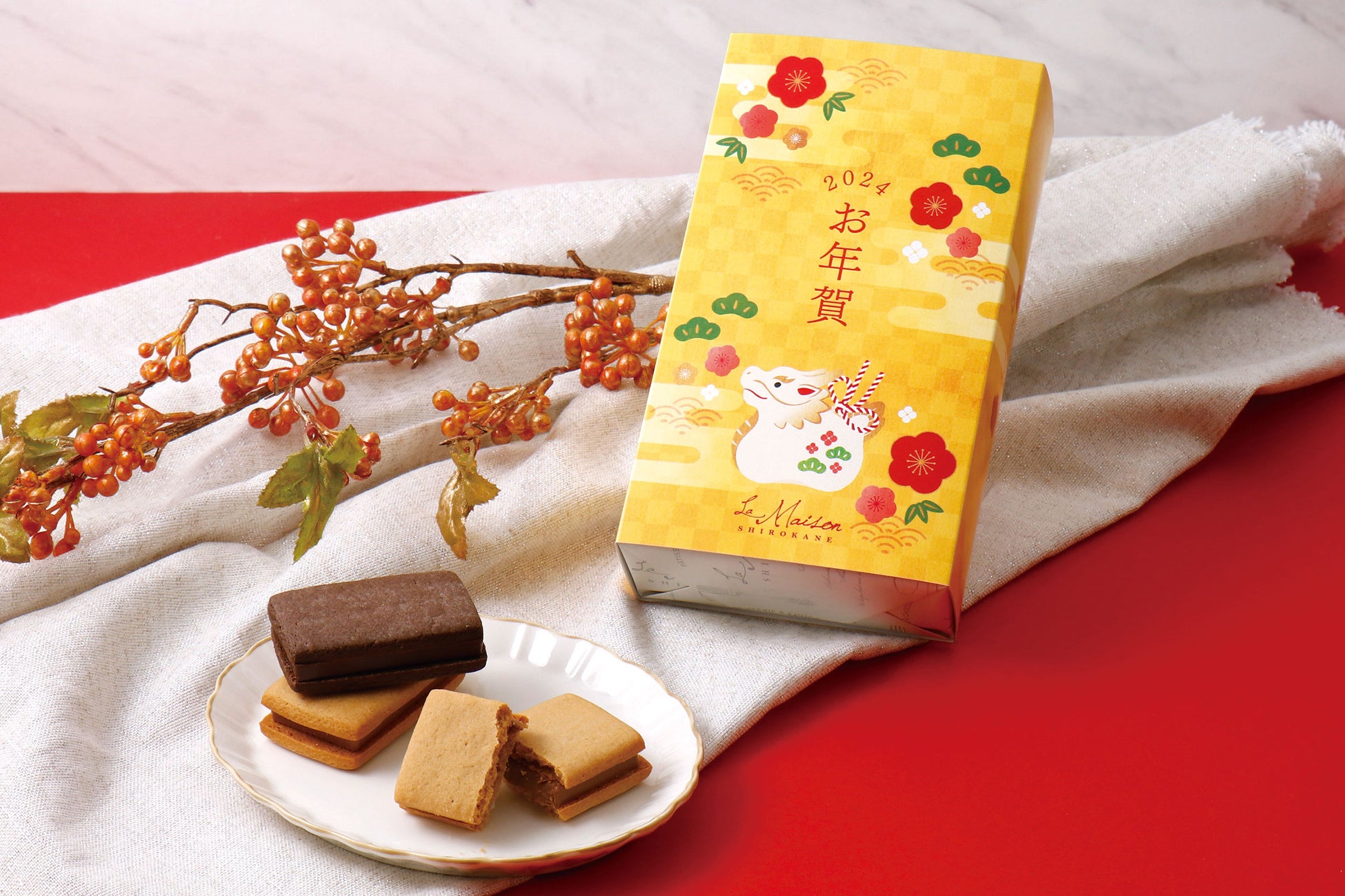 ショコラサンド 5コや季節のショコラサンド 5コに掛けられる、お年賀スリーブが登場!