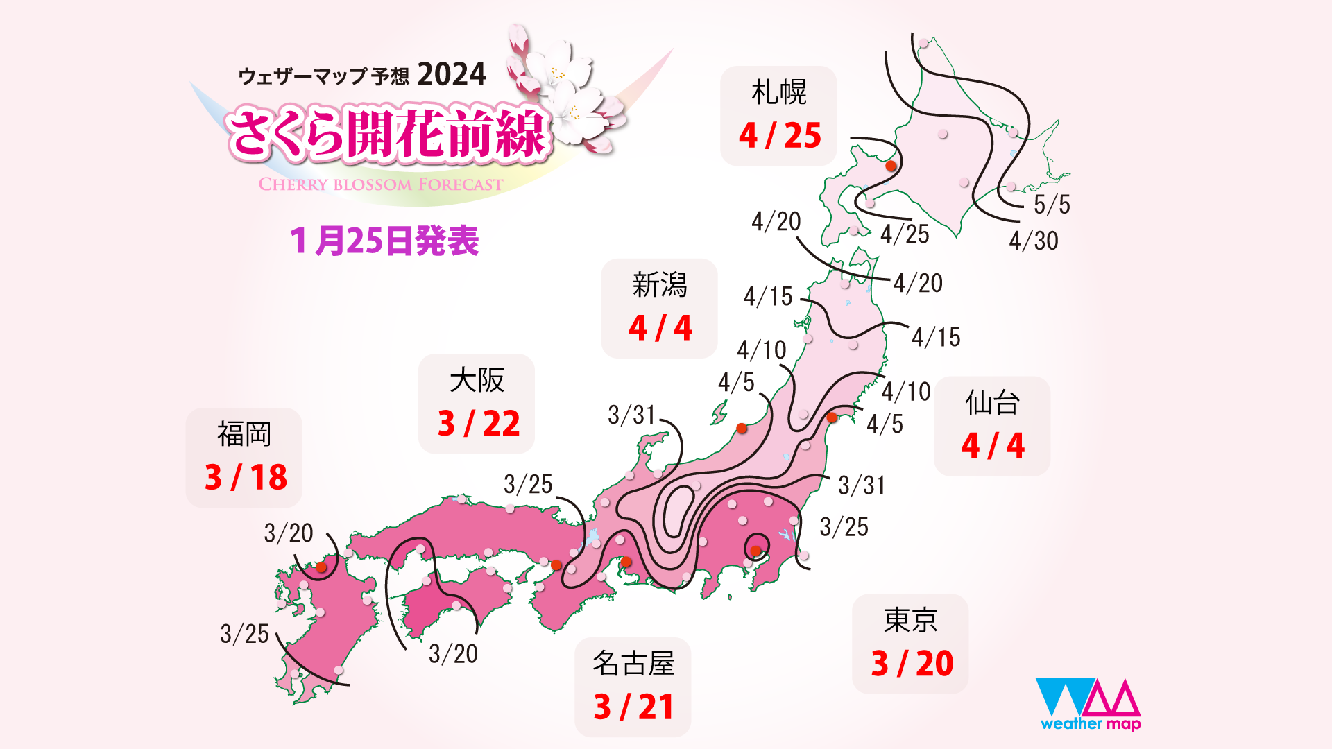 ウェザーマップ、2024年第一回「さくら開花予想」を発表