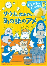 「サウナあと飲みたいあの味のアメ」はサウナ上がりに飲みたいあのドリンクの味をイメージした、甘酸っぱく爽快感のあるキャンディです。パッケージに描かれている動物たちがサウナに入っている可愛らしいデザインも特徴!