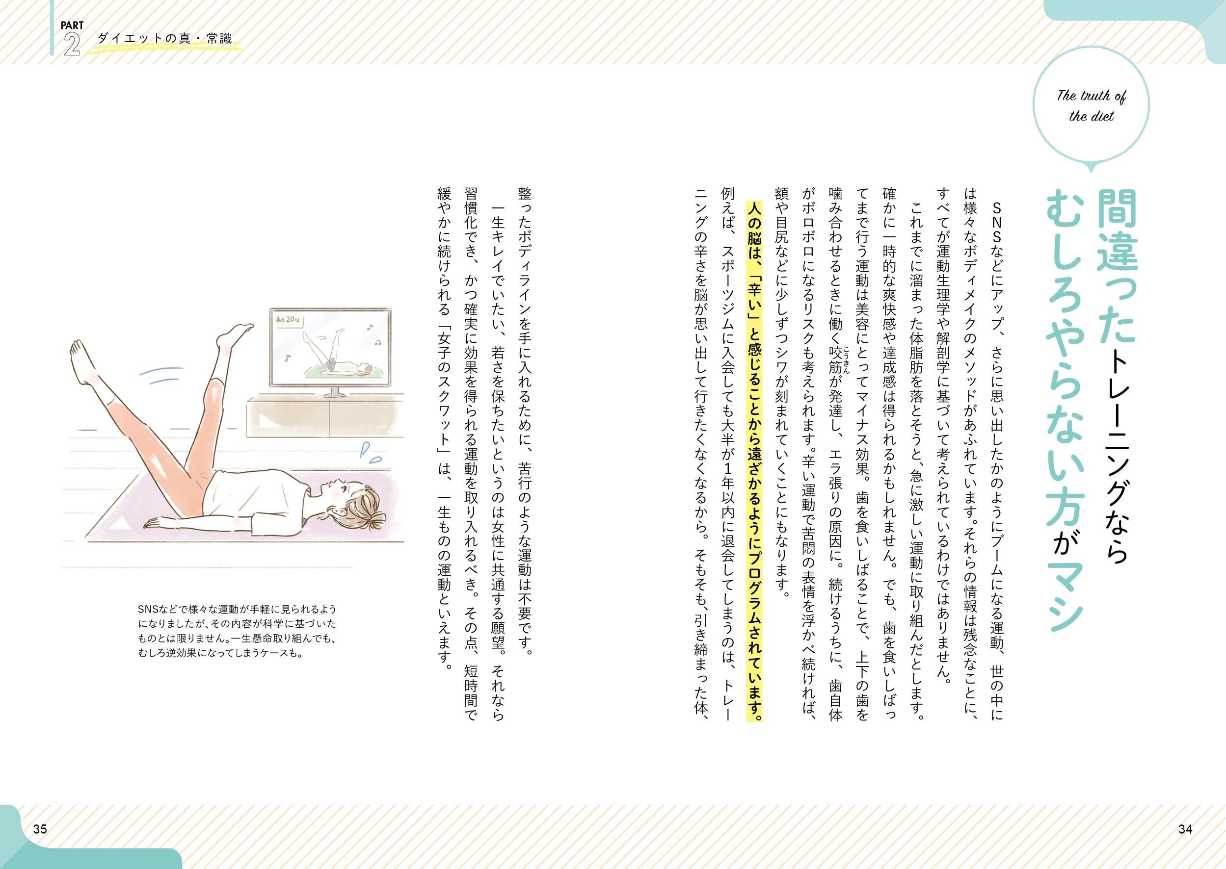 「カラダのパーツが元の位置に戻る」ことで、その場でたった1回やっただけでもウエストが数センチ細くなるほどの効果があります。どんなに運動が苦手な方でも自宅で簡単にできるので、ぜひ多くの女性に手に取って頂きたい一冊です!