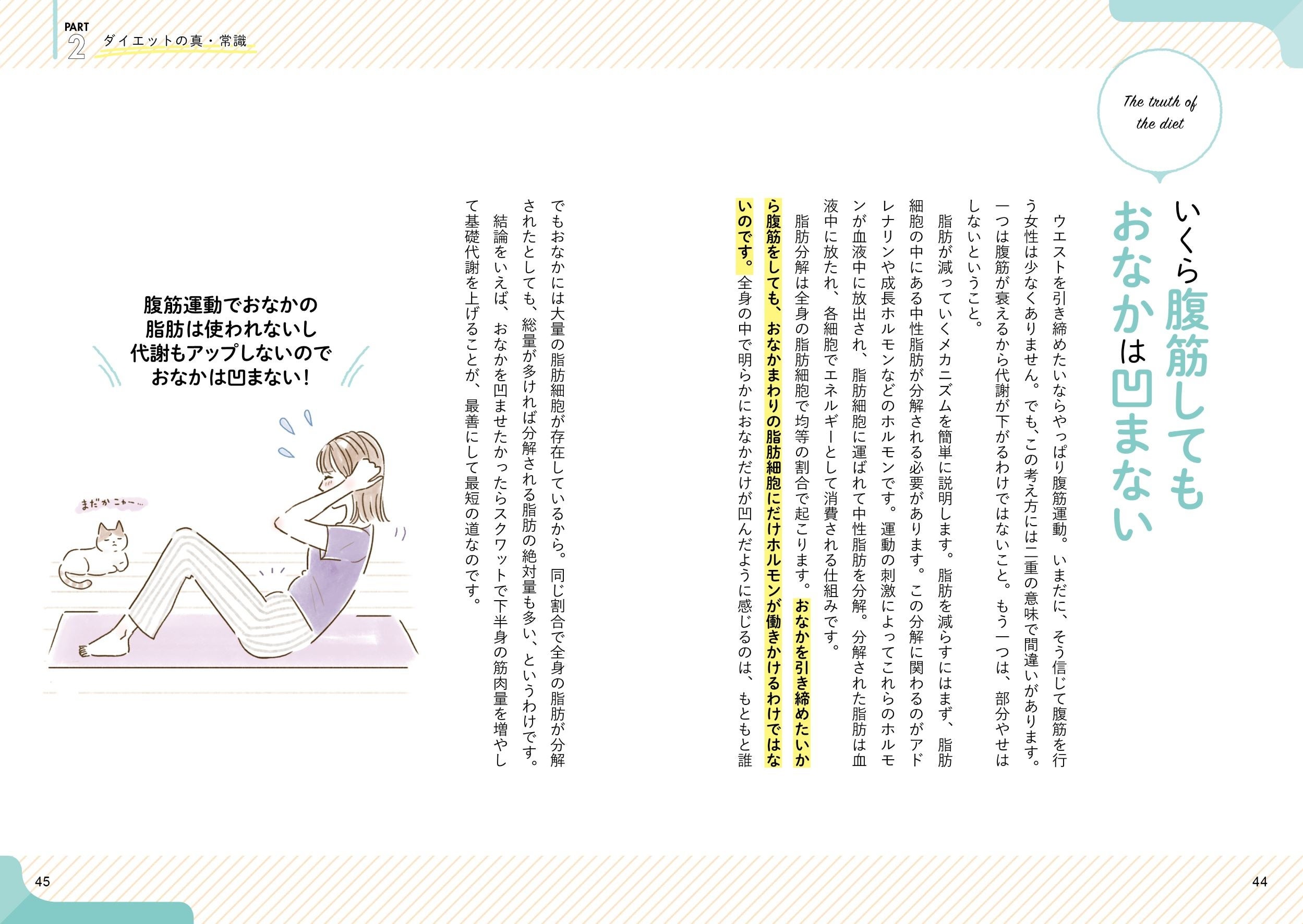 体脂肪を減らす効果があるのはもちろん、お腹を凹ませ、脚も細くなり、バストとヒップの位置を上げ、O脚を改善し、ボディラインを整えてくれます。肩こりや便秘や冷えといった女性に多いさまざまな不調を改善する働きもあります。運動が苦手な方でも自宅で簡単にできるので、ぜひ多くの女性に手に取って頂きたい1冊です!