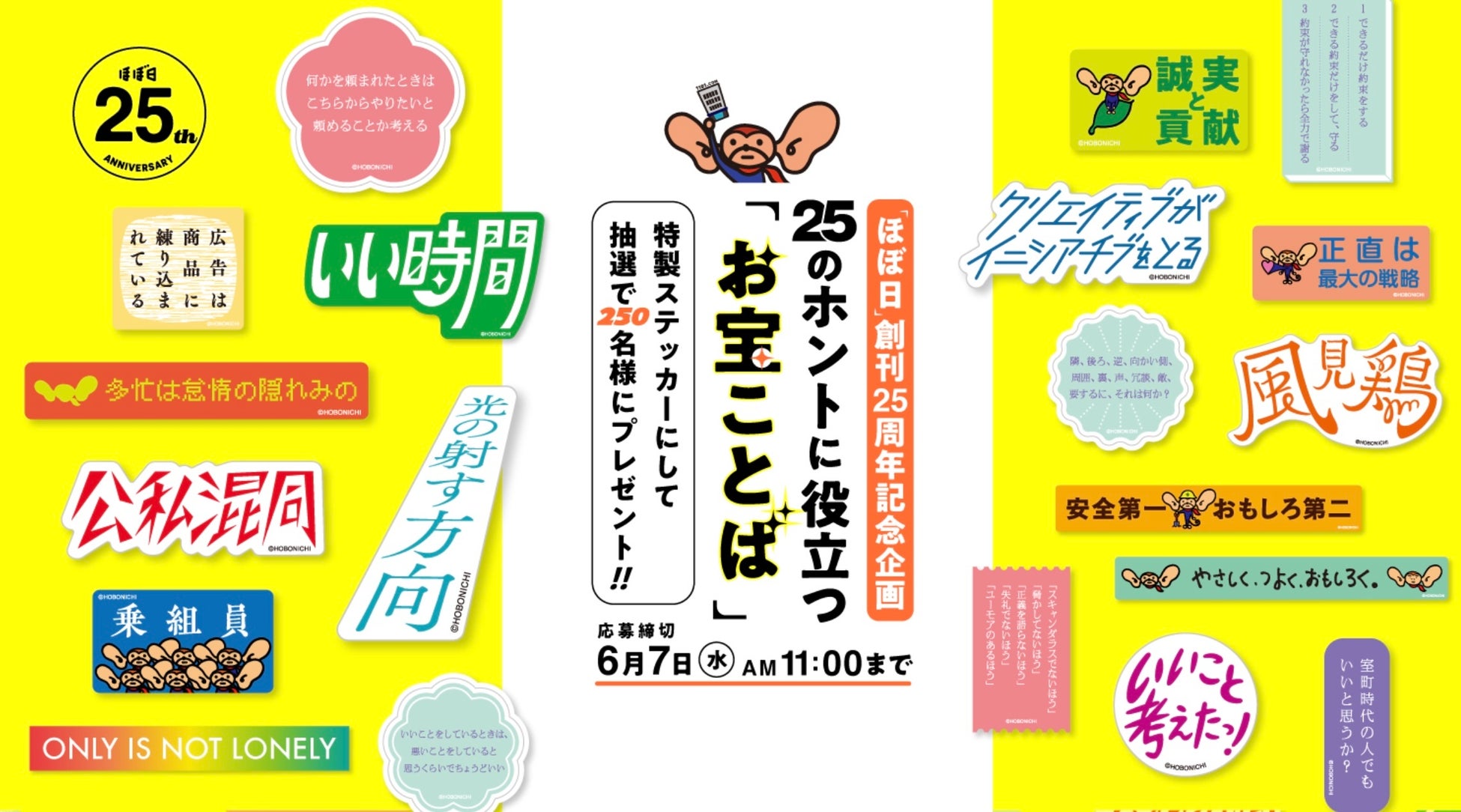 おかげさまで「ほぼ日刊イトイ新聞」は創刊25周年をむかえます。25のホントに役立つ「お宝ことば」特製ステッカーをプレゼント!