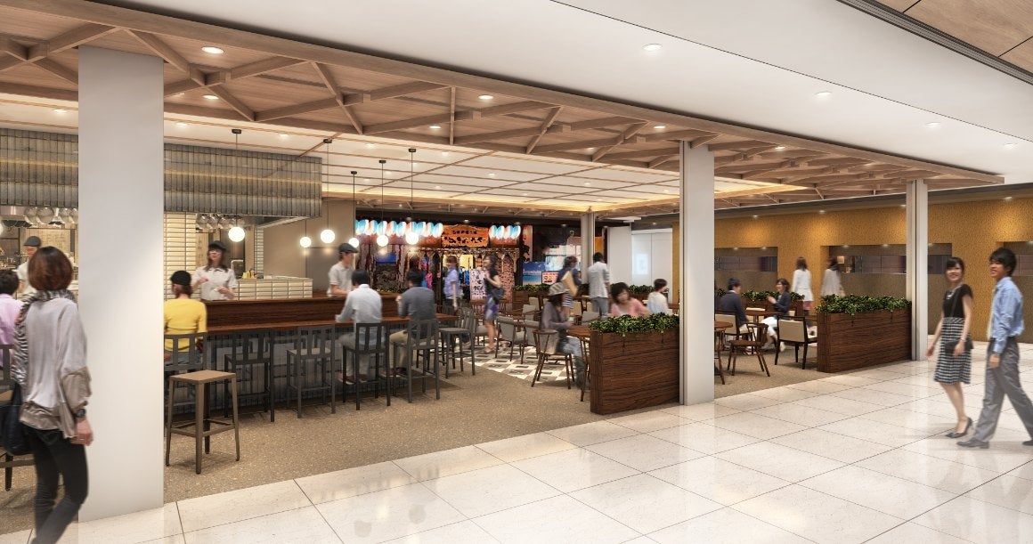 また、5・6階の飲食ゾーンは、軒をイメージした天井であたたかみがあり居心地の良い空間を演出するとともに、6階店舗を中心に開放的なつくりとすることでフロアの広がりと一体感を表現し、さらに賑わいあふれるレストランフロアへと進化していきます。