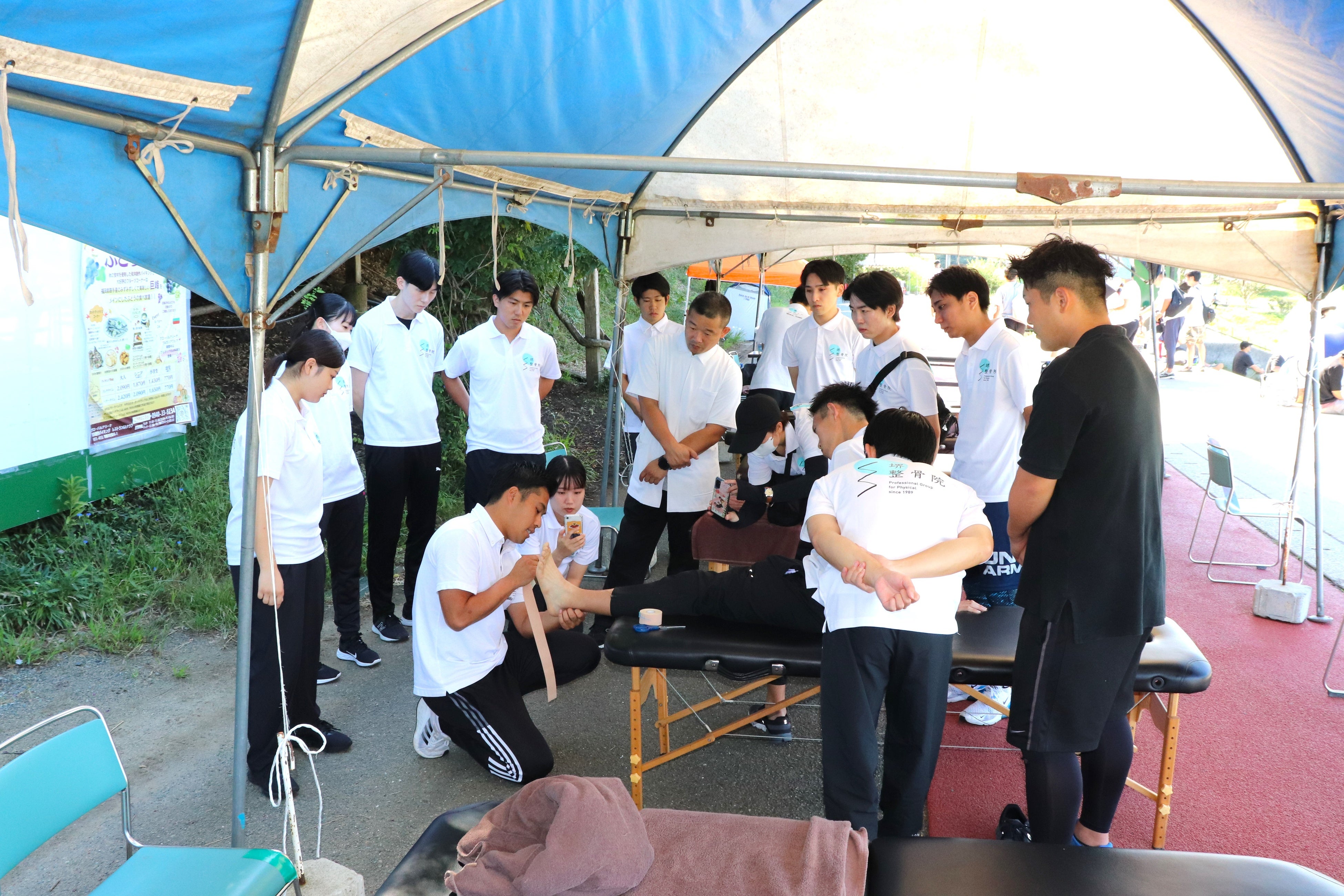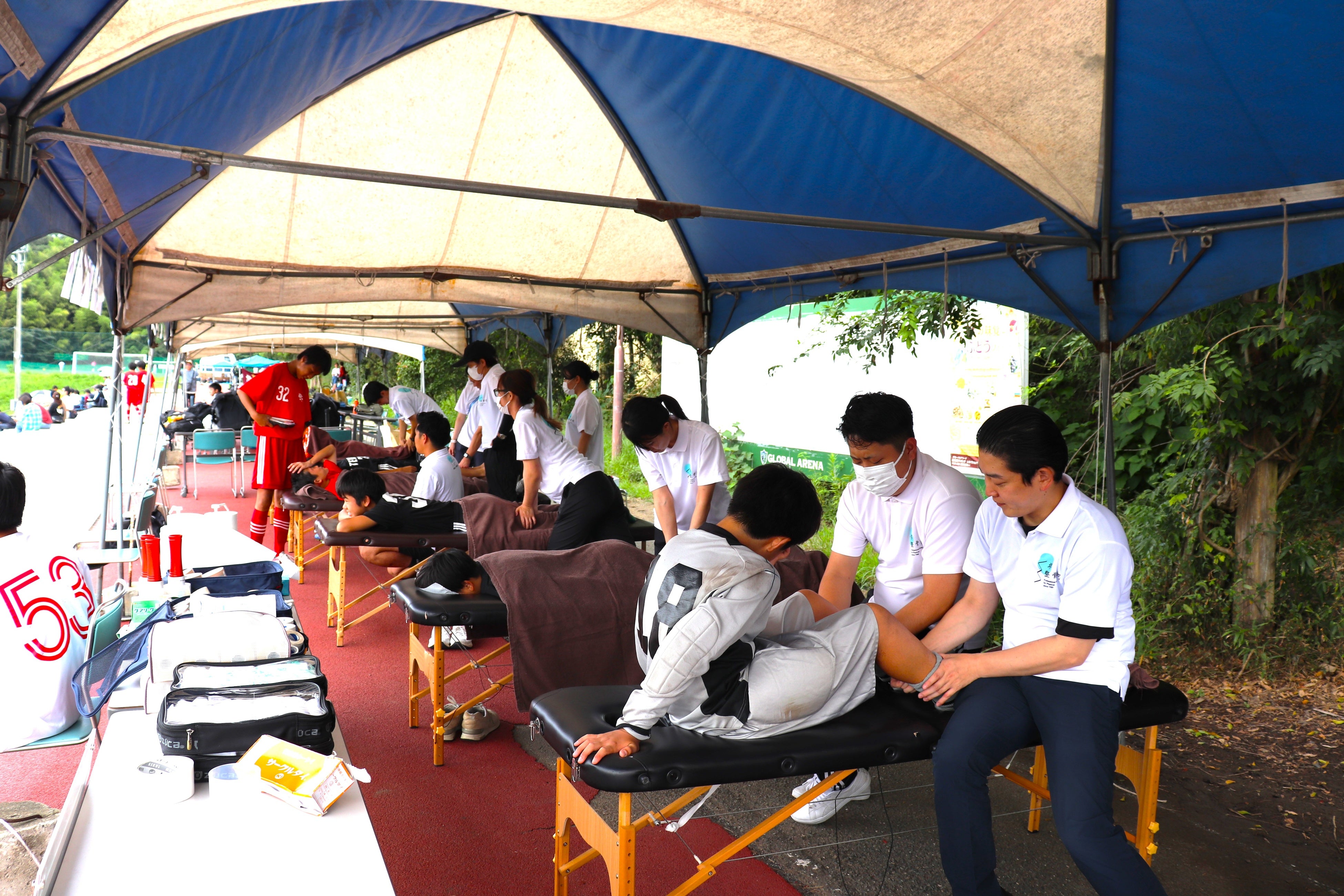 スポーツ大会に救護ブースがあり、国家資格を保持した柔道整復師・鍼灸師がいる事により、選手や監督・保護者の方の安心にも繋がります。