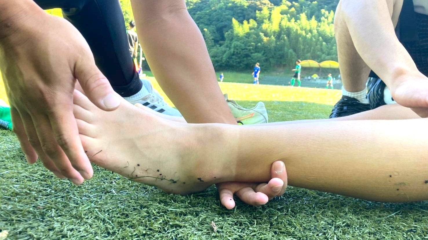 今大会は、気温の高い中での開催となり、熱中症との関連性も疑われる下腿の攣りを訴える選手も多々いましたが、トレーナーが適切なケアを行いつつ聞き取りや処置を行いました。
