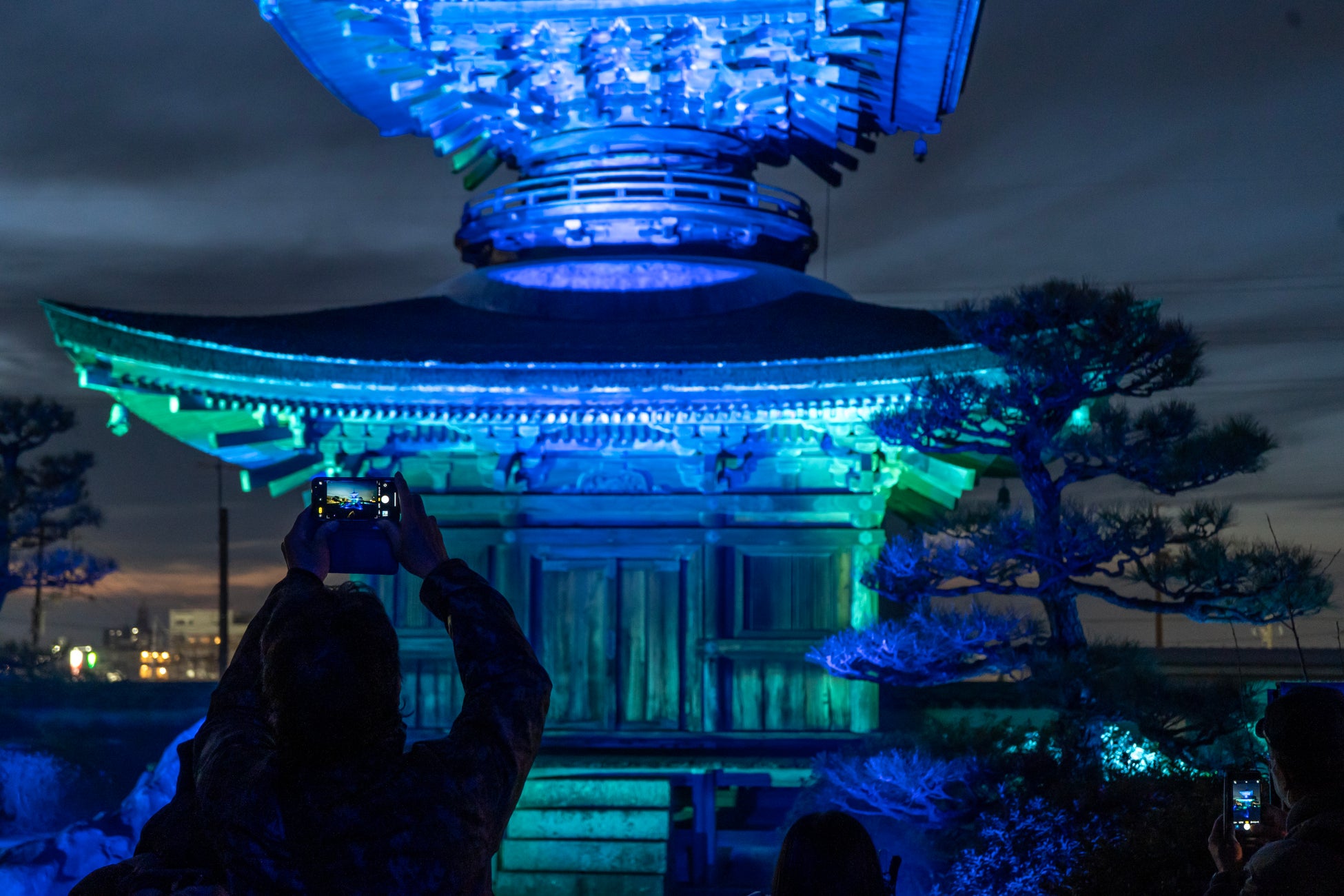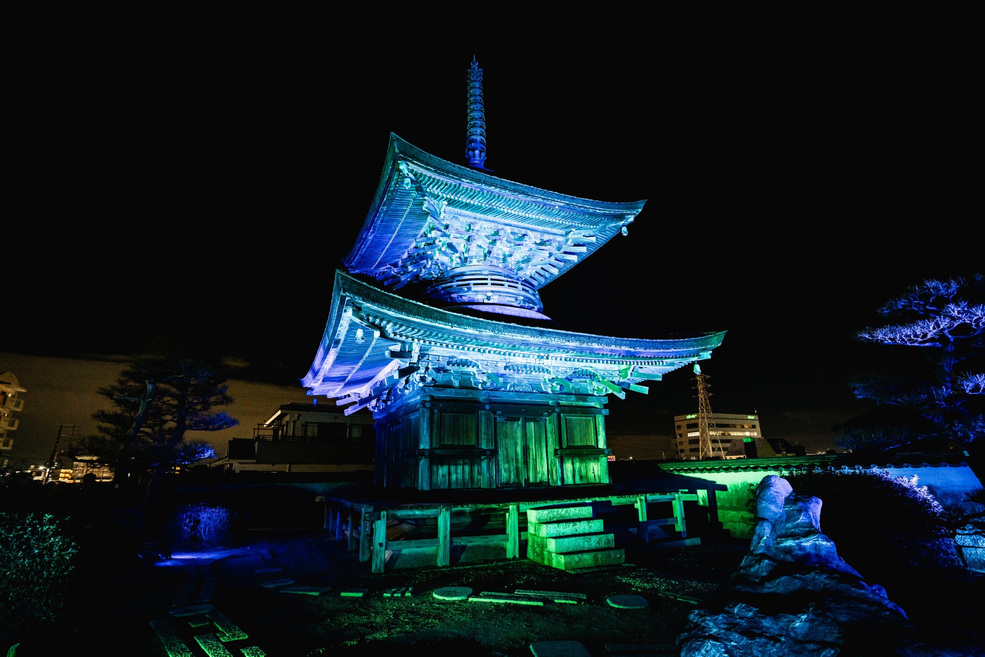 <愛知県指定有形文化財 山門 プロジェクションマッピング&重要文化財 多宝塔 ライトアップ>