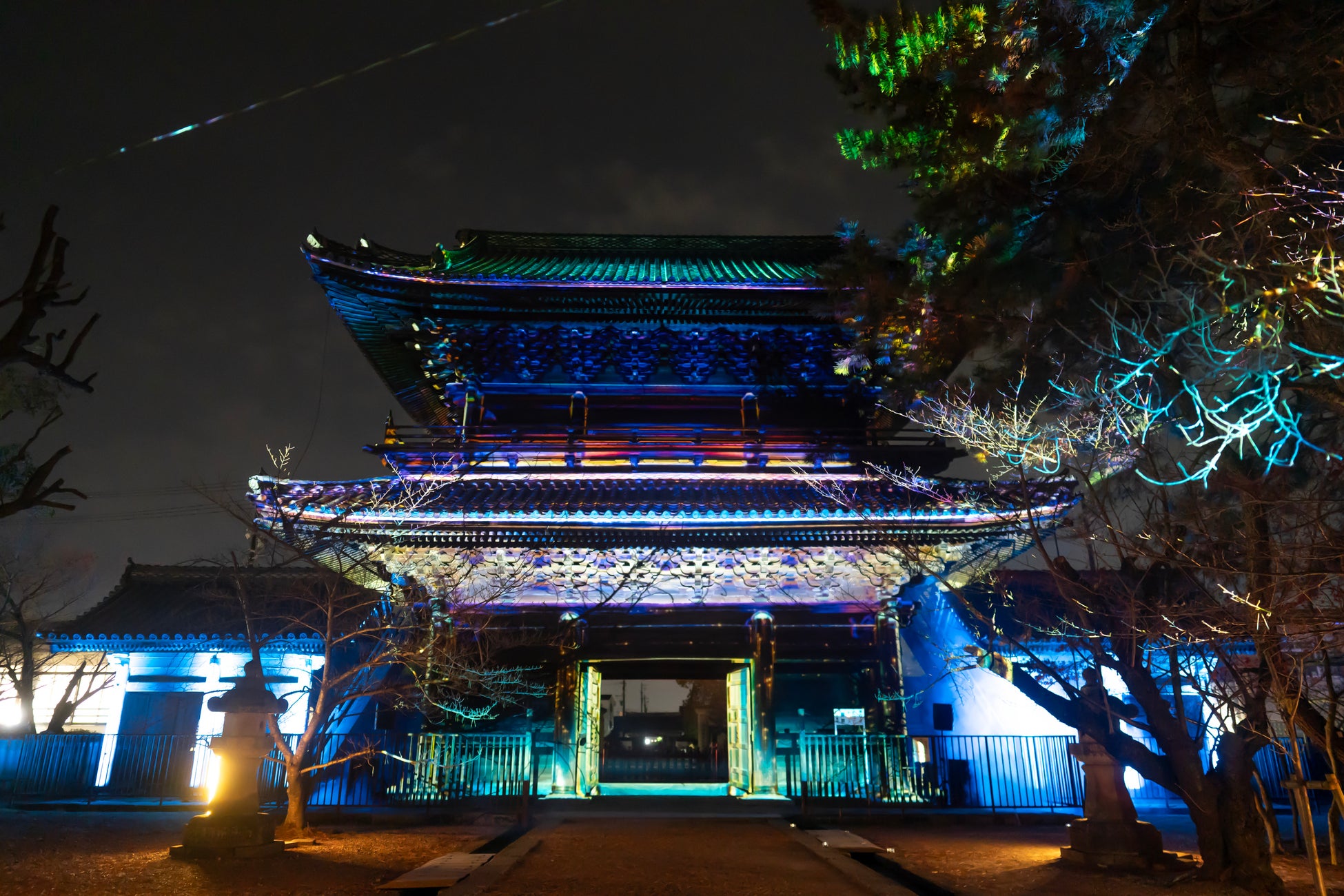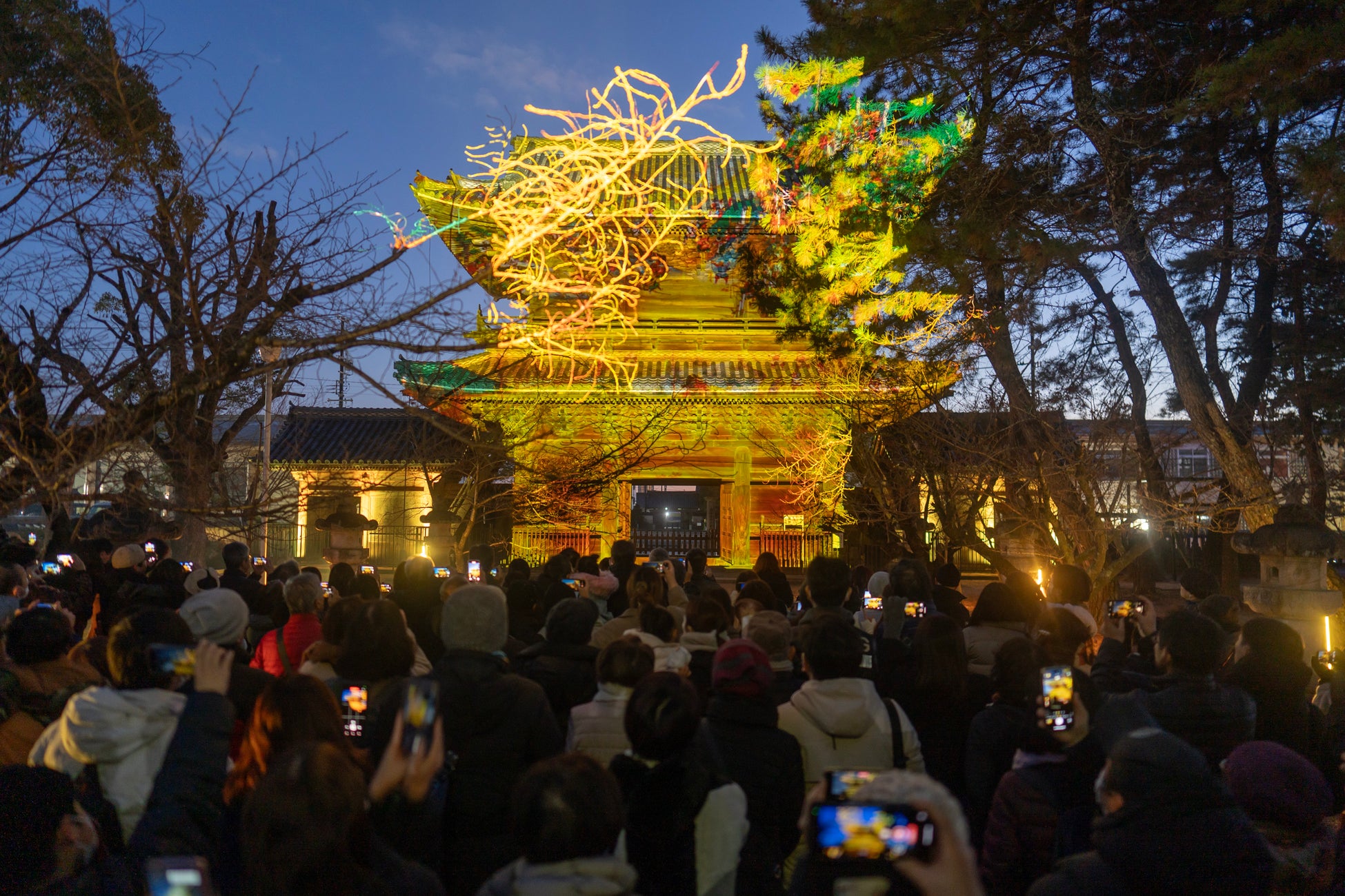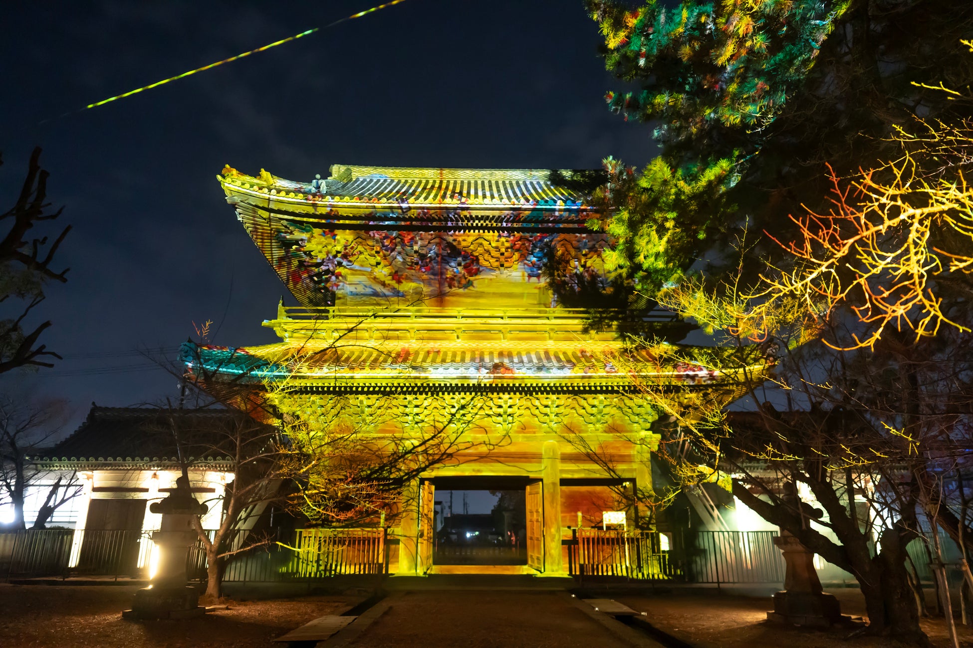 2025年1月17日(金)〜19日(日)に大樹寺(愛知県岡崎市)で開催。大樹寺の歴史と美を照らす光の演出―壮麗な山門や貴重な障壁画を映し出すプロジェクションマッピングと幻想的なライトアップ