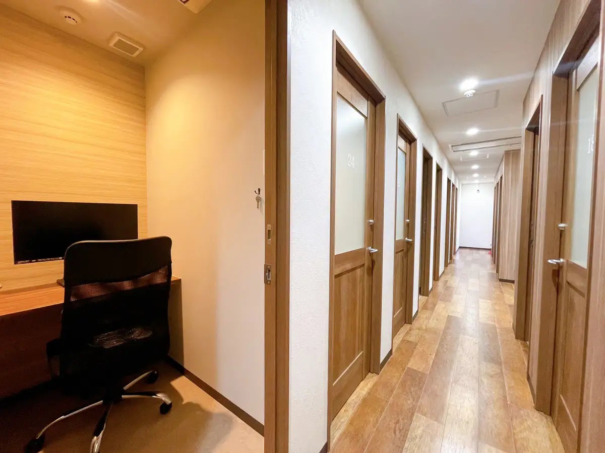 既存フロア(5階)の個室が満席になる頻度が高くなったため、4階を増床してスペースを拡充。1〜2名用完全個室、4名用会議室を新設し、予約専用フロアとして運営しています。