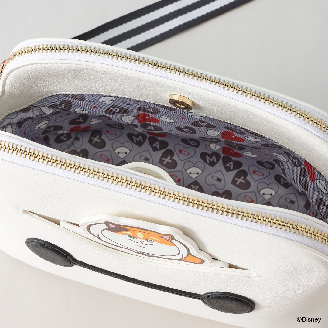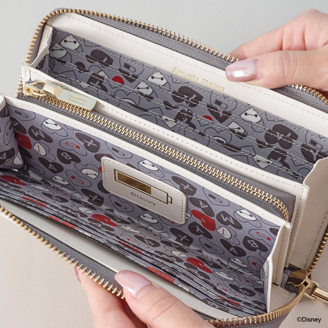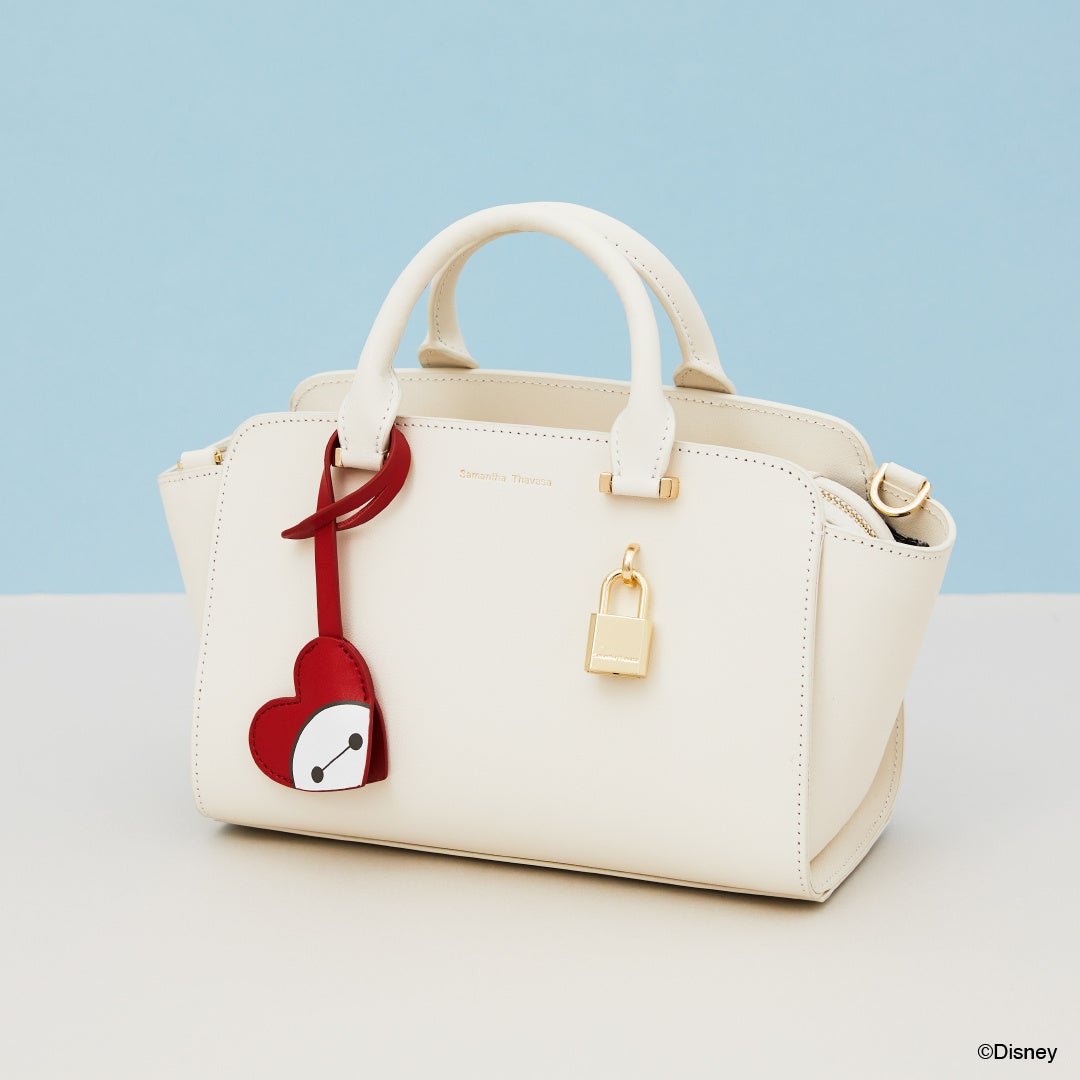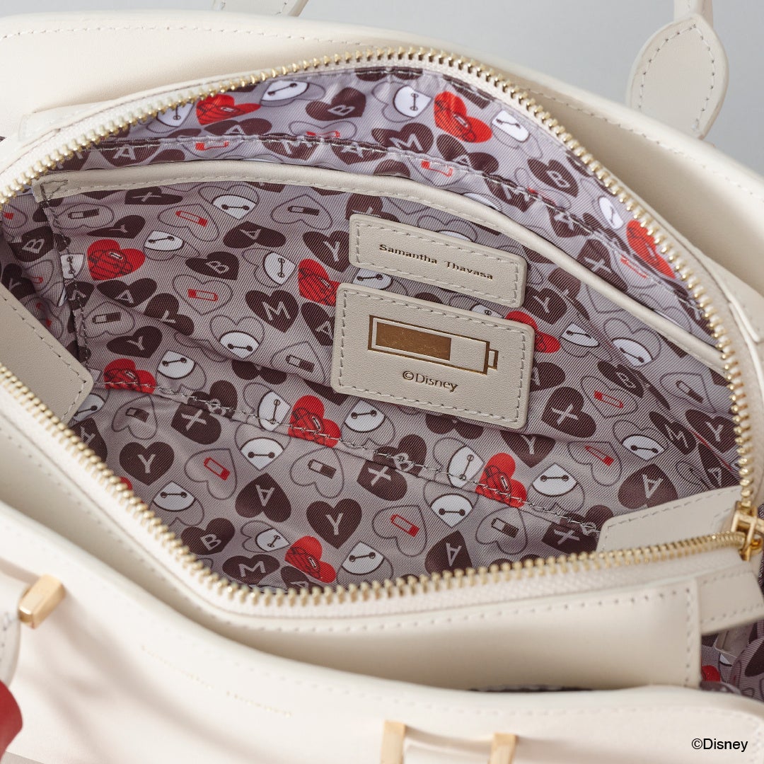 サマンサタバサのロングセラーシリーズ“サマンサ ミア”の全面に「ベイマックス」のフェイスを表現。表面と裏面でどちらをメインに使用しても「ベイマックス」の世界観を楽しめる仕様。裏地には「ベイマックス」のバッテリー残数を示すアートが。「ベイマックス」のパワー状況をひっそりとウォッチングできるデザインに。ハートモチーフのチャームタグは「ベイマックス」の顔がデザインされていて、バッグのワンポイントとしても映えるアイテム。