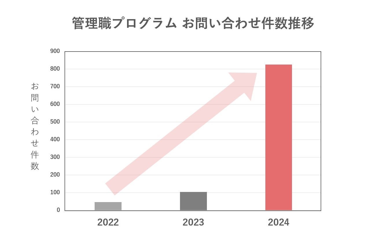 昨今の人手不足、採用難、若手の離職といった課題への解決策として、当社では管理職が鍵を握っていると考え、管理職育成の重要性をことあるごとに説いています。当社代表の著書『管理職のチカラ』を抜粋・編集したダイヤモンド・オンラインの記事『「3年以内に辞めた人」の退職理由ナンバー1に「そりゃ辞めるわ…」しか言葉が出ない』でもそのことに触れているのですが、この記事が11月19日、20日と連日でアクセスランキング1位になっており、管理職育成の重要性が広く認知されていることを改めて感じさせられました。実際に、当社の管理職育成プログラムへの問い合わせ件数も飛躍的に増加しており、現時点で既に昨対比759%となっている状況です。